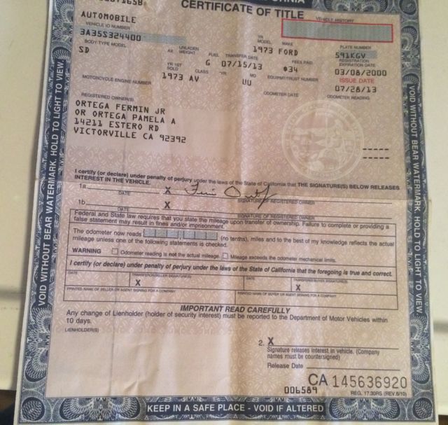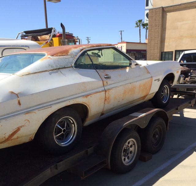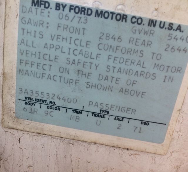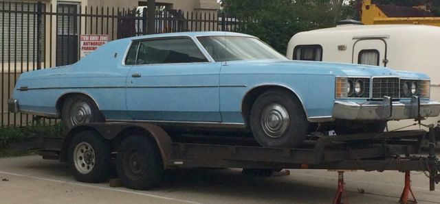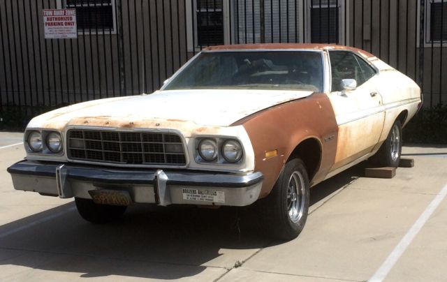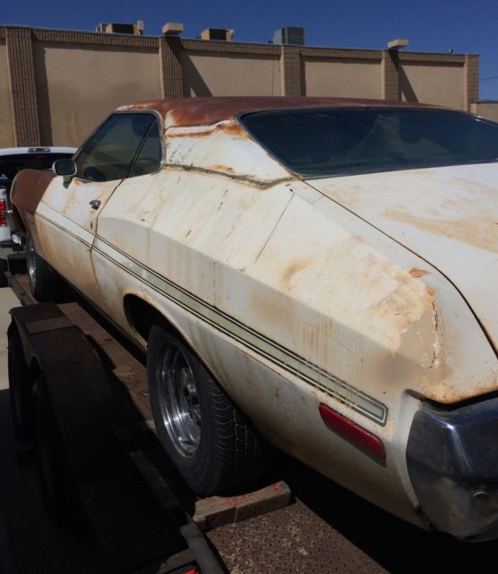 1973 GRAN TORINO SPORTROOF 1973 Sportroof 400 2V-C6 (LESS ENG/TRANS***SEE '73 LTD w/400 2V & C6 BELOW). The engine compartment is as it was when the engine was removed. All wiring and component connections are complete and intact. I have the driveshaft, radiator & shroud, all A/C components and a transmission crossmember. The Wimbledon White (9A) exterior is the original paint and being so would show if it's ever been in a major accident, which it hasn't. That being said, the left front fender has been replaced and a small dent on the right rear quarter panel. All glass and chrome trim are intact, with dent free front and rear bumpers. The doors open and shut like a bank vault. The Medium Blue ( MB) interior has the correct blue sport door and rear quarter panels in very good condition. The instrument cluster and A/C dash are complete. All the headliner bows are there. The dash pad needs replacing. 3 Small 3"x 3" areas of rust through in the passenger rear and right front floor boards. Rear lower corners of both doors have 3"X 3" rust, but NO rust under doors, on rear lower quarter panels, in trunk or recessed areas at the bottom of the inside trunk quarter panel areas, top of roof showing light surface oxidation and original factory filler at the four corners where the roof was attached. Has a clean California title, currently on Non-Op with only $81 due for 2017 California tags. Original California Blue/Yellow license plates. $1650 for the Sportroof, and also have a separate, good running '73 FORD LTD with the correct 400 2V and C6 trans and everything you'd need to make a power-train and interior swap into the Sportroof. The Sportroof and the LTD are both available for $2850.00 combined.