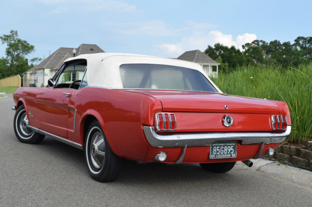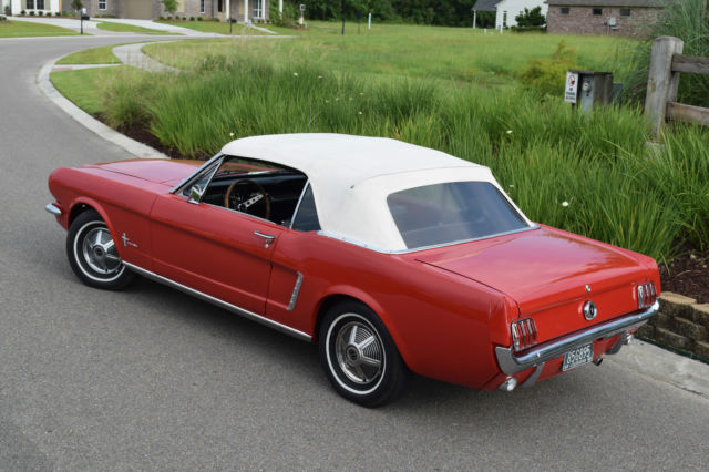 DescriptionRed 1965 Ford Mustang convertible: in-line 6 cylinder, 3 speed manual transmission. Black interior with Pony accents. White convertible top with new components. Clean engine compartment with redone engine with many new parts. Recently installed new carburetor, gaskets, and belts. New disc brakes. Very recent tuneup. This car has NO leaks of any kind. Garage kept. Newer exterior paint; new exterior chrome parts. All electrical components in working order. Tires in excellent condition with original hubcaps. Runs and looks good; turns lots of heads when out on the road. Would make a great occasional or even daily driver. Terms of Sale The winning bidder must pay deposit of $1,000 [non-refundable] within 48 hours of close of auction through PayPal. If no contact is made with me, I reserve the right to re-list the vehicle. Payment is due - in full - within 5 calendar days of auction close via bank wire transfer or cashier's check. The car will not leave my possession until all funds have cleared my bank. A Selling Agreement will be sent to buyer once full payment is received. A signed copy must be sent back to me before the Title, Bill of Sale, and/or vehicle will be released to buyer. Inspection Inspection is welcome and encouraged. Inspection must be made before end of auction, not afterwards. Transportation The buyer is responsible for all shipping costs and arrangements. This vehicle is only available to residents of the continental U.S. Warranty This classic collector vehicle is being sold as-is, with no warranty expressed or implied. It is the responsibility of the buyer to have thoroughly inspected the vehicle before bidding, not afterwards. Although every effort is made on my part to ensure that this vehicle meets all buyers' expectations, the ultimate responsibility rests with the buyer. Taxes The buyer is responsible for tax, title, and license fees in your state of residence. LOW RESERVE!