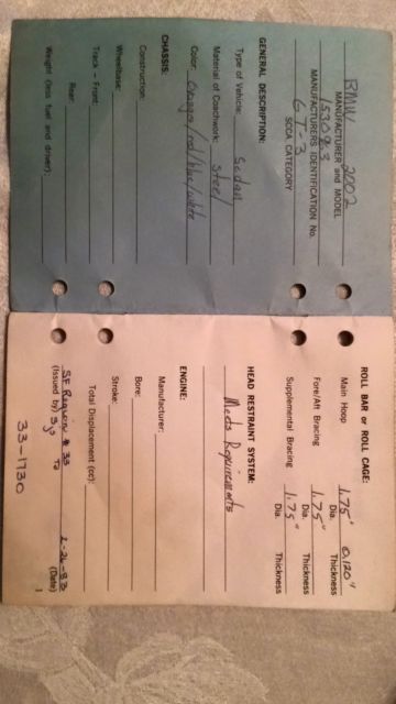 I am bringing you this beautiful Wide-Body one of a kind 1972 BMW 2002 GT3 Spec. SCCA race car. It has been a race car since 1983. It was built by Mr. Lyle Moore at "Moore power" in Pataluma, California with his master technician Mr. Greg Taylor. The car is registered and has a clean California title.The engine was built By Korman and is 12.5 to 1 compression ratio with side draft carburetors and throttle bodies, LSD differential, 3 row custom built radiator and electric fan. Folks this is a seriously fast car which is registered and has a California title. It can be driven daily since it's a 1972 and does not require smog check. (May be not in the rain with the race compound tires!)It has 430 Compound Good-Year race tires and Accusump oil pump with Halon Fire extinguisher, racing fuel cell, Battery shut off switch, Fuel pump switch, Red poly-eurothane bushings and custom dash with gauges and 4 point racing harness seat-belts. It is a 2 seater and does not have rear seats.You must come and see this beautiful beast in person. It has lots of service records.It's weight is 2173 Lbs and with a 180 Lbs driver it will have 52.19% Front wt. and 47.81% Rear wt. done by "Roger Kraus Ent. INC with their Competitive Edge Corner Weight ProgramGood Luck,Koorosh (323)422-4956