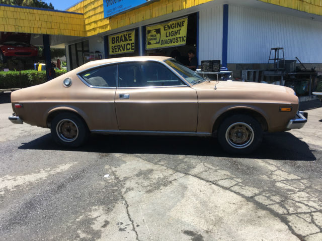 1 original owner,california car from day 1,has original blue and yellow plates front and rear rebuilt original engine with streetport 13b from atkins rotary in washington,cost was 6500.00...has 48ida weber carb from racing beat with racing beat intake manifold,racing beat headers 5 speed manual transmission,new clutch,new water pump,new brakes,new radiator all new tune up parts..car runs excellent and has alot of power...the body is original faded gold paint,all trim is intact and present except for 1 emblem in the rear panelthe hood has some rust on the front outer edges can be repaired easilythe trunk has some rust on the outer edges can be repaired easilyfront windshield has a crack in itthere is no other rust anywhere,floors,trunk,frame,window edges are california perfect and rust freethe interior is all intact but is old and original,the dash cover is sun worn and has cracksim only selling my dream car because we are moving into an apartment with no garage car is currently registered til 2017 and i have the clear california title in hand email me or call me if your interested i will help ship car anywhere in the world at buyers expense 650-396-9172 robert