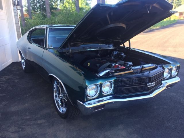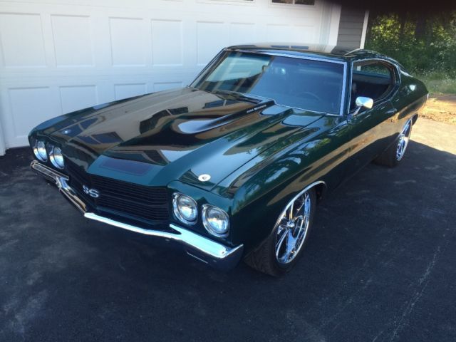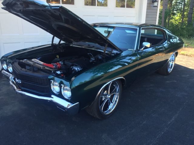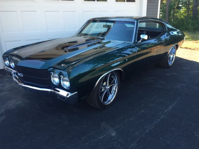 Use the Buy it Now and I will pay up to $2500 in shipping. Selling my 1970 Chevelle 450HP LS2 restomod. Engine specs with less than 1000 miles Scale of 1-10. A 10! Clean LS2 swap with many upgrades that includes GM 6.0 LQ9 by TMS King Racing main/rod bearingssingle piece cam bearingsHypereutectic dual coated Flat top (10.75:1 Compression ratio)high performance ring setGM floated connecting rods performance remanGM LS 317 heads angle milled and built Billet custom ground camshaft .578 .587 226 232 112+4Pac 1218 valve springs good to .600" liftChromoly push-rodsMelling select high pressure oil pump GM MLS head gasketsGM rocker arms and pedistol cores 12 point head studsLS7 high rev liftersLS2 Timing setLS2 Lifter treysLS6 intake manifold and gasketsNew o-ring and seals kitNew SS fuel linesNew tanksinc baffled gas tank. Custom intakeLS2 engine coversCorvette accessories. (New water pump, New alternator, belts, hoses, pulleys etc)Dirty Dingo mounts.New plug wiresLokar throttle cable and trans dipstickNew aluminum radiator with dual fans. Tucked wiringInterior specs: Dakota digital gauge cluster with custom back lighting. New headliner, seats covers, carpet, door panels, etc. center console, restored seat belts. After market steering wheel.Horseshoe shifter with the Overdrive shifter (notice the 4 gears pictured)Driveline:New Currie 9 inch with 3.70 posi.New Spicer bearings and yokeFully rebuilt 4L60E over drive transmission. Shift kit, clutches, sensors, etc. good for 600HP Zo6 specs.New mounts and bushings.New Disc brakes and pads all around. New brake boosterProportioning valveNew brake linesSuspension and steering:1-5/16 front sway bar.New upper and lower rear control armsNew upper and lower A-armsDrop springs for perfect look and ride (barely tucks tire)New quick ratio steering pump. (No slop in steering)New rag jointNew shocks all aroundWheels and tires:Riddlers wheels with good Toyo tires. 9.5 out of 10. No curbed rims here. 20X9.5 front.20X10.5 rearExterior and body:All the typical A body issues have been taken care of:New quarters, floor pan, trunk pan, cowl ends, shaved fire wall, new fenders, wheel houses, core support, inner fenders. Door hinges. New trim and bumpers all the way around. Relocated battery to trunk.Glass is good shape. Some minor scratches. I believe it's the original glass minus the windshield. Was painted in 2009. From a scale of 1-10 I would say 8.5. Some minor chips but touched up. Dark green with black racing stripes. Cowl induction hood. Car has NEVER seen rain. Only driven on nice days. Used detail spray to wash only no hose water. No swirls in clear. Tons more work done and parts replaced. Send me a message if you any questions. Any extra parts I can find I will also toss in if wanted. I have over 500 pictures of this rebuild process. Any questions I or my mechanic can answer. Happy bidding!