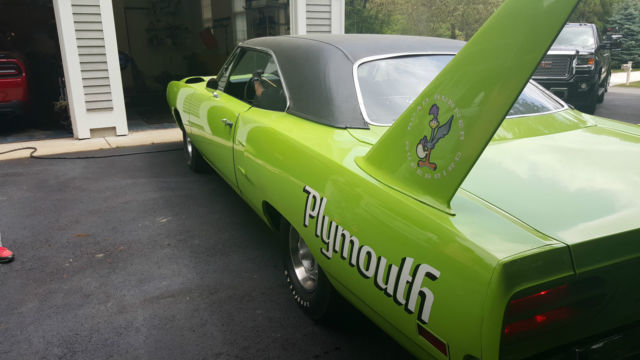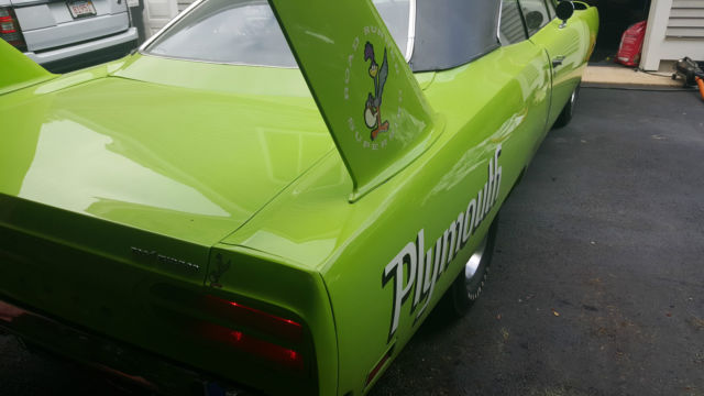 VIN RM23UOA181274 Highly documented vehicle including : Broadcast Sheet Window Sticker All Original Dealers Paperwork Original Finance Contract Owners Manual Dealer installed Air Conditioning owner instructions Dealer installed 8 track instructions Obscene amounts of dealer service records Registrations throughout this Birds whole life Inspected By Galen Govier 9/29/2009 Documented by Galen as #23 in the 28th batch of 28 batches " Last One" # 1921 in the sequence of Superbirds built # 643 of 643 440 4bbls I have registered in the USA " Last One" Noted as everything in excellent working condition . Quarter panels, trunk panels , all matching drive train numbers The list of documentation is also noted by Galen as abnormal. I have three books of documentation that I will share with a serious buyer Overall the car is in excellent condition considering it is in its original state. It has been noted the only body panel that has been painted is the hood. All other panels are straight as an arrow and original paint. The interior in in excellent condition, shows no sign of age and everything is in working order.