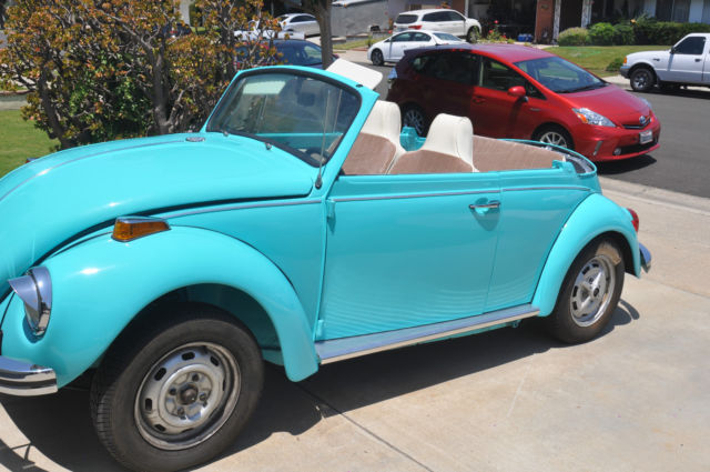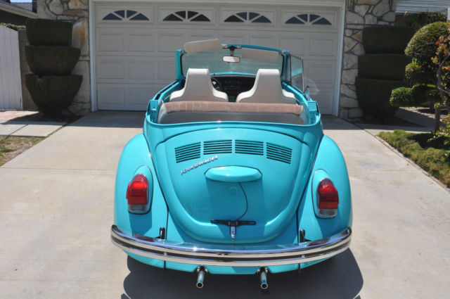 This was a pan-off restoration project I started. But because of physical limitations, I am unable to finish. This was going to be my play vehicle, so NO EXPENSE WAS SPARED! The pan was stripped, sandblasted, and painted with POR15. It has absolutely no rust whatsoever. Originally a CA car. All the old drum brakes were removed and replaced with 4-wheel disc. All the brake components (master cylinder, lines, fittings, reservoir) are brand new! ALL NEW RUBBER 360 degrees! New windshield and gasket. The entire vehicle was put together with NEW stainless steel fasteners. Where strength was needed, I used grade 5 or grade 8 bolts. The Air-box was completely rebuilt. All the electrical wiring has been replaced. All new gauge cluster. Rebuilt speedometer showing 2 miles. THE ENGINE IS BRAND NEW! Not rebuilt, but a brand new 1641 turnkey from GEX ($4,500) with chrome kit! It has an upgraded alternator (deletes voltage regulator) for consistent power. This engine has an electronic ignition, so no more setting messy points. New muffler, and chrome tail-pipes. Rebuilt 4-speed transmission with new clutch, pressure plate, and throw-out bearing. It has all new upholstery. All the padding was removed. The seat frames were sanded, painted, new padding and upholstery. Off white vinyl with tan velour inserts. This Bug even comes with a Bluetooth DVD video stereo with a back-up camera for added safety. I have over $16,000 in new parts alone, not counting the hundreds of man-hours detailing this classic car. A brand new cherry wood and chrome VW steering wheel still in box. My loss is your gain. No reasonable offer refused. Once finished, this vehicle will give years of trouble-free use.