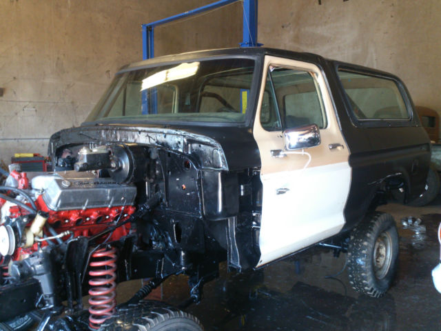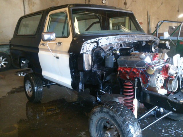 Selling this project bronco has a built 460 $6k in parts alone with 50 hours of run time on it, big cam roller rockers msd ignition alum valve covers alum intake moroso oil pan two external mounted oil filters big wrapped headers. Has a built c6 trans and 205 t-case with zero miles on them since build. Cab has been pulled off the chassis and underside painted as well as the frame and axles. Chassis has 4 in lift and body is lifted 3 in. Full painless wiring harness nice back seat good carpet roll bar very solid body only two very small spots with rust each spot is about 1" long and 1/4" wide at bottom of the rear fender area where they often get rust, everywhere else is rust free and very solid. I have all the whether seals, taillights and most the parts for it. Parts it needs are Carb, fuel tank, fuel lines, chassis brake lines, trans cooler lines. I have some other wheels to go with it also. Vehicle will be sold with bill of sale and lien paperwork that will need to be taken to oregon dmv and they will issue you a title. Please serious bidders only call if you have questions 9712393663