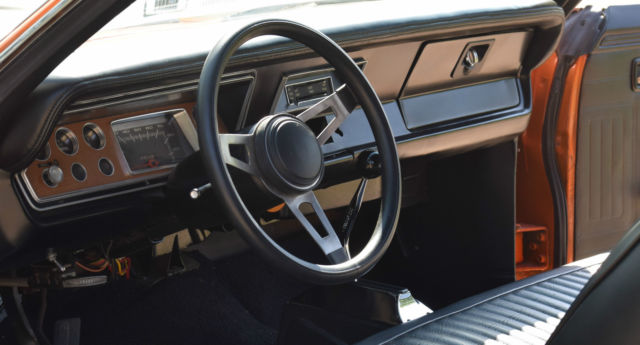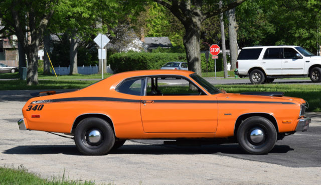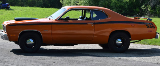 Restored 1975 Plymouth duster, Rebuilt 360 block has about 6000 miles on it. Holley 770 4 barrel Steet avenger carb Edelbroke intake manifold Hooker headers new Tci trans 727 3 speed auto w/ ratchet shifter, with new torque converter new Dana 60 393 rear end with sure-grip new quarter panels, floor pans, trunk pan, and inner fenders Dashboard was replaced, along with steering column to move it to a floor shifter All new suspension Reinforced Frame rails new disc brakes on front new drum brakes on rear all new Interior has new carpet, panels, and the seats were reupholstered. new Vitamin C Orange paint, with Duster 340 graphic, and custom tail stripe. Functioning hood scoop for increased air flow. New gas tank and fuel lines/fuel pump new master cylinder new radiator, heater core, water pump new alternator, battery, has a new high torque starter new drive shaft. Car runs and drives but does need a little work to be 100%. Needs passenger side mirror and center mirror. Needs a full exhaust system, has bolt on mufflers at the moment. Windshield wiper fluid needs to be hooked up. No radio.