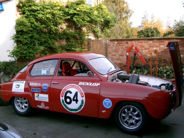 ex- renowned Saab guru and UK specialist - Chris Partington Saab 96 '65 racer built and tested with no expense spared. SAAB 96 Sport\Monte Carlo, Chassis number 349678. The car is eligible for multitude interesting and prestigious events. Huge spec, please inquire for more details. Basic spec: Completely rebuilt, prepped and strengthened shell as per works Saab Race & Rally preparation. Group II engine fitted with Cegway flat top pistons modified for reed valve application ( higher skirt ) Spec II gear ratio cluster. 7:40 CW&P. Salisbury LSD. Sport 4 stud hubs, brakes and drive train Koni dampers. race springs. Revised geometry to eliminate as much understeer as possible. A lot of time has been spent on handling. Twin Peirburg fuel pumps. Sonett carbs with reed valves. Modified XP racing exhaust, all dyno tested and producing around 101BHP at the front wheels with excellent reliability. With the car is a large spares package amongst which there is 4 or 5 EMS 5" soccer type wheels fitted with standard tyres these are used for âstandingâ to prevent damage to the race tyre as well as MOT should your race category require one. There is also several different CW&P to set up a desired gear ratio for a particular circuit. 8 original Ronal 5 1/2". 5 of which are fitted with race tyres Dunlop CR65-204 These were purchased in June 09 but still seem in race condition although a little heat input helps. The ignition is by Interspan. Fully mappable. A selection of jets will be provided. In the parts there is everything to convert the car back to road spec if anyone should ever wish to. Cost over £100,000 to develop and build, lots of documentation, FIA paperwork and history. V5 registration is present, plenty of race and tuning notes. Happy to help with Shipping organisation and cost calculation Worldwide. If you have any further questions please do not hesitate to ask.
