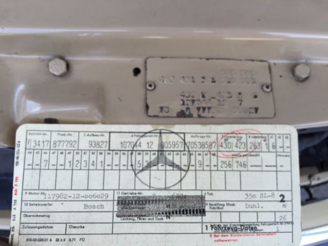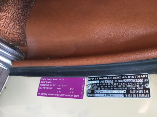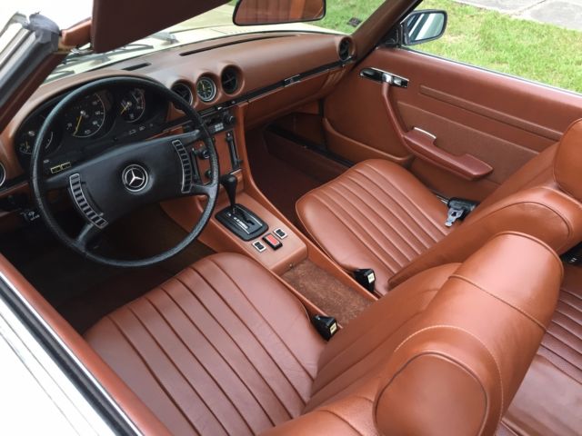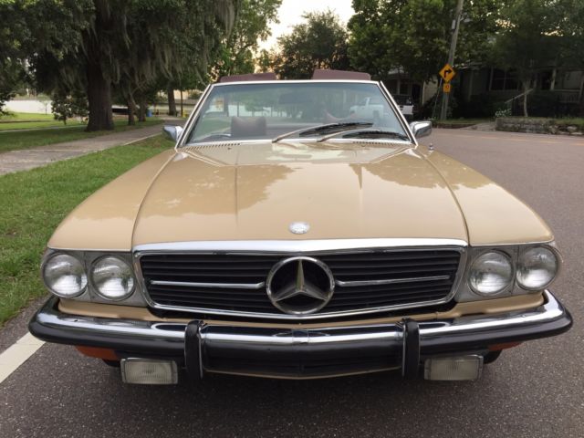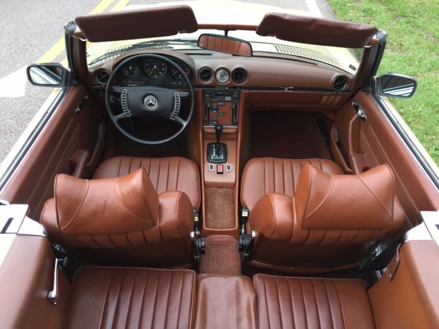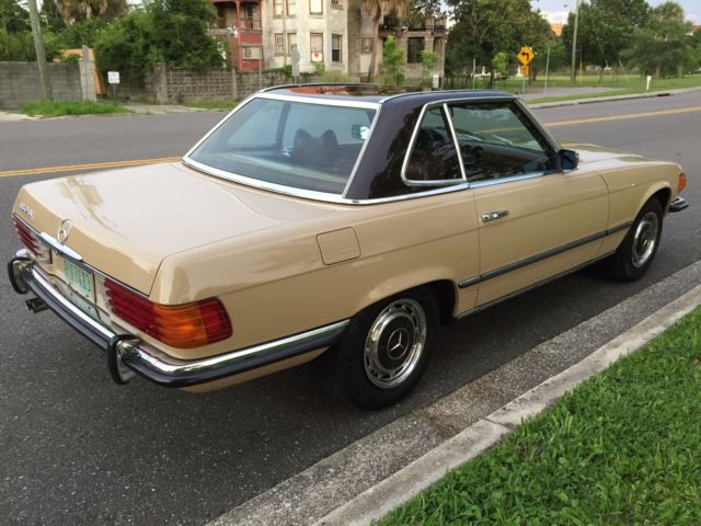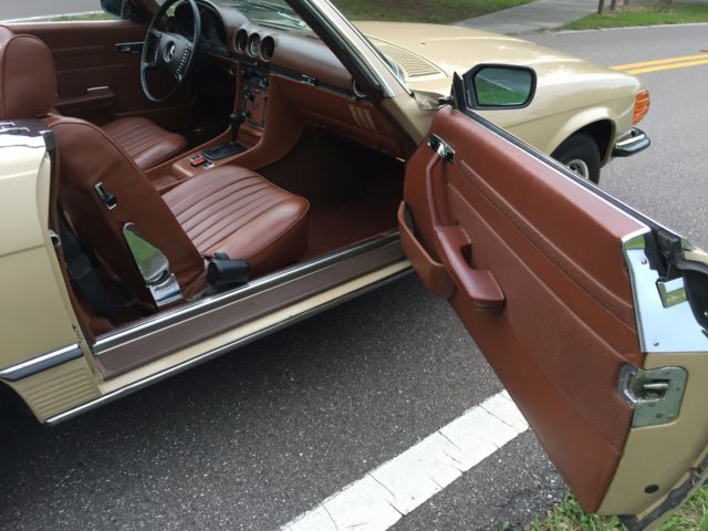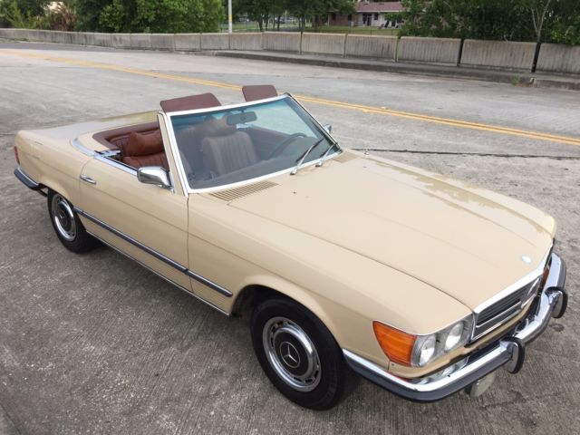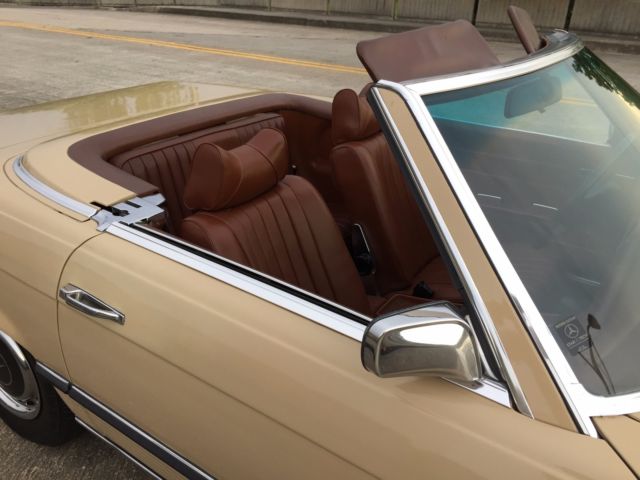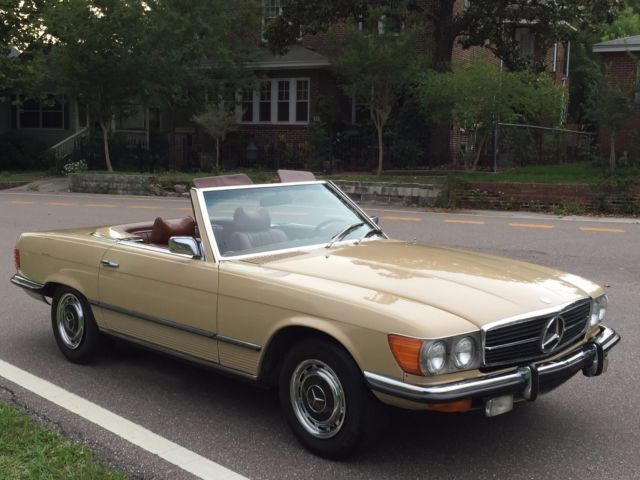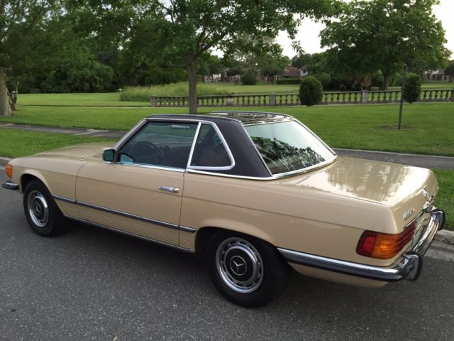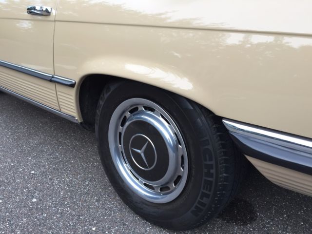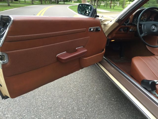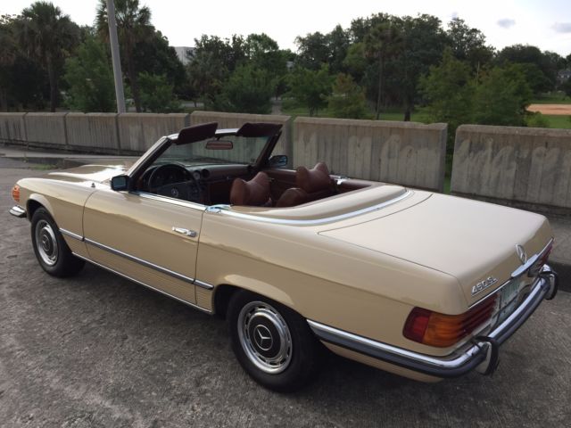 1973 Mercedes-Benz 450SL Roadster (W107) VIN # 107.044-12-005957Early production car (07/1972). Original, RARE and desirable two-tone exterior paint: body in DB 430 Autumn Beige (herbstbeige), hard-top in DB 423 Dark Tobacco Brown (tabakbraun dunkel). Desirable EURO bumpers.Dark Tobacco Brown hard-top (paint, glass, chrome trim, headliner - all absolutely like new). Brown soft-top (two years old, like new). Interior in 263 Tobacco Brown (real LEATHER, not MB-Tex vinyl!). Power windows (quiet, smooth, operating the way they should). 97313 miles. 1 owner since new. DATA-Card (Fahrzeugdaten-Karte) matching numbers car! Excellent running/driving car. Strong and powerful engine. Smooth and tight transmission. Well and properly maintained. Recent tune-up. Quality exterior repaint ($8200, in 05/2014) and it shows!... Tobacco Brown LEATHER seats like new (always covered with sheepskin wool covers)! Carpets like new! All the chrome (bumpers) and aluminum trim like new! All the glass absolutely flawless! All lights, gauges, turn signals, horn and radio work the way they should.Brakes are good, emergency brake too.Tires are Michelin (90%). The exhaust is in excellent condition (no need of repairs). Hood insulation pad is intact and in good condition. Original trunk rubber mats are intact, fresh and elastic (not brittle).Absolutely original/solid and RUST-FREE undercarriage!Never in any type of accident.Original books/manuals, jack, spare tire, first aid kit and tools in pouch included. * * * ALSO INCLUDED: - original aluminum hard-top stand;, - hard-top hoist (to be attached to the ceiling for easier removal). * * * Absolutely great investment!!! The NADA value of these W107 Roadsters is amazing and it will continue going up, especially by early Roadsters with EURO-style bumpers like this one!RARE and DESIRABLE two-tone car !!! When was the last time you saw one like this one?!...This vehicle is only 43 years old.It is absolutely gorgeous and it should be enjoyed right away.Due to the age sold as-is.$500 deposit due immediately, balance within the next 3 days via bank wire transfer, cashiers check or cash.This is a WORLDWIDE sale. I can help organize the shipping to anywhere in the world.* 904-859-5561 *