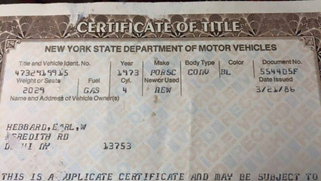 Body is in good condition. Perfect for restoration. Removable "Targa Top" Engine was running when driven to current location. But has not been started in years Key is broken off in ignition. Surprisingly only tiny rust spots on upper body and surface rust underneath for the length of time car has been sitting.Although Battery Tray is rusted (see last photo)But under tray seems ok. Scratch on passenger side door. see photo's. Windshield has a chip drivers side. The engine compartment screen does not want to stay down. i think one side latch is broken. that"s why you see someone holding it down in picture. This car was left after the purchase of the property where it sits. The previous owner wanted to restore it but never got around to it. He removed a lot of pieces such as lights and covers and wipers, mats. I found them in the Front and rear compartments.Title in hand and owners manual.The light covers are sitting on the driver side dashboard. You can see in one photo.Car is being Sold AS Is. So Please message any questions. We have already had an offer local to the cars location. But have turned them down. If you have a Good Reasonable offer, chances are it will be accepted. This Car needs to be removed from location ASAP. Additional photo's can be provided upon request.