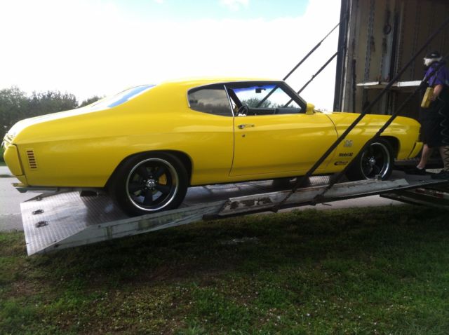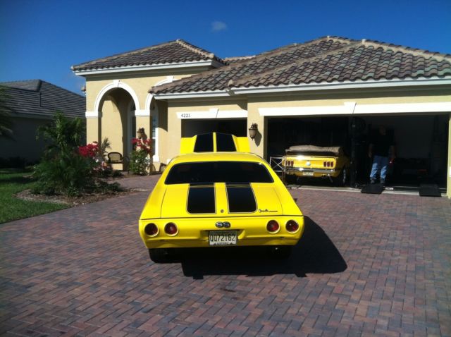 THIS IS A NO EXPENSE SPARED ROTISSERIE RESTORATION WITH ALL THE DOCUMENTED PICTURES AND RECEIPTS. this car will not disappoint you. rides, shifts like a new sports car with ac The under carriage of the car looks as good as the body. extremely clean car I'am a perfectionist i have owned the car for 18 plus years, the reason for listing wife say it must go to pay my children's college San diego st. and FSU. i am listing a 1991 corvette ZR1 w/only 799 miles an EBR 1190rx motorcycle all for sale 1974 honda CT 70 mini trail all original mint for its age. ENGINE, TRANS, REAR ZZ-502 Create motor w/comp cam roller rocker's, msd pro billet distributor,vintage air front runner serpentine, aeromotive fuel regulator vintage air ac be cool 4 core radiator, flex-a-lite electric fans TRANS 5 speed tremec gear box w/hydraulic clutch, quick time bell housing, hurst shifter DENNY'S nitro drive shaft and bearings Moser rear with 33 spline axles and 373 gears and moser rear girdle cover Ricks stainless steel fuel tank with walbro electric fuel pump ss braided fuel lines and ac lines SUSPENSION ,TIRES AND WHEELS GLOBAL WEST upper and lower control arm's, hotchkis lower springs front, rear, edlebrock IAS shocks, hotchkis GM A Body Adjustable Rear Suspension Package quick ratio AGM steering box w/werner universal joints urathine bushings. nitto tires with coy wheels 4 wheel disc brake with emergency brake by SSBC flowmaster ss exhaust, Hooker SUPER COMP- HEADER'S W/JET-COATING BODY AND PAINT CAR WAS MEDIA BLASTED COLOR PRIMED AND TWO STAGE SIKKENS AKOYA PAINT AND CLEAR. THIS CAR WAS ON DISPLAY AT THE JACOB JAVITS CENTER IN NYC for best paint SIKKENS CO wanted to display this car, i was honored. have the pictures frame was stripped and painted with sikkens black chassis paint. front lower spoiler (BLACK) projector headlights DIGITAILS digital led tail light remote electric door locks and trunk release with a key fob, NICE flaming river tilt wheel steering column INTERIOR Dakota digital gauges, corbeau racing leather seats with simpson lap and shoulder belts, custom carpet dynamat type sound deadener, new console stereo w/custom speakers Hopefully no typo errors N,R,F,T,Errors TOO MUCH TO LIST, please call me with any questions 561 400 4880 JOHN