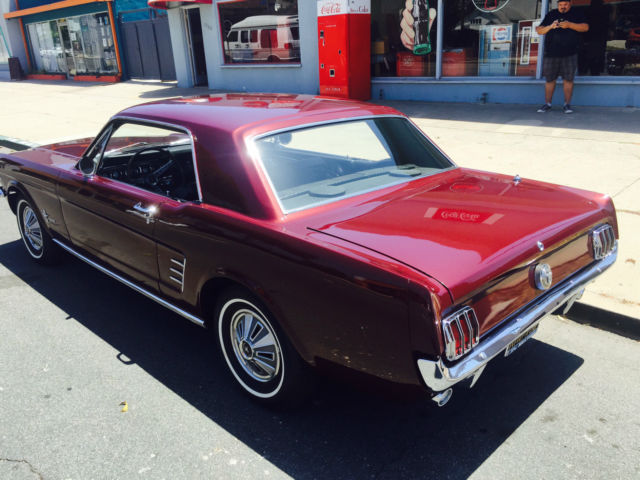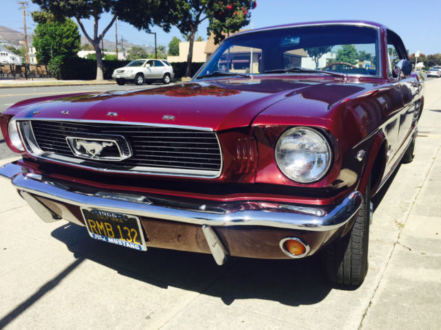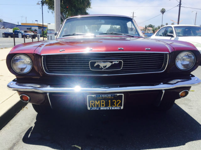 My Father stumbled into this car by accident back in 2003. He purchased a home from a lady who recieved it as a high school graduation gift in 1966. She drove it around for many years locally and did nothing to it but a paint job, then parked it in the garage covered up for many years while she drove modern cars. It would still be there if she didn't have to sell the house back then. This car would become my Father's passion for many years, unfortunately he passed away last month and this car needs a new home. Carpet and headliner were changed along with 2 bottom front seat cushions, but the rest of the upholstery is original. A power brake booster was added, tires are almost new. Radio is AM/FM / cassette with electric rear antenna. We lifted it enough to get some pic's of the rust free floor pans and rocker panels. There is no evidence to suggest any body repair, headlight buckets and inner fender wells are perfectly straight. This car drives and handles just as nice as it looks. It get's thumbs-up every time it's on the road. This Pony fit's the description of a "clean low mileage California car". Even though it turned 50 this year, it is in better shape than many 5 year old cars. This classic must be sold to someone this month......and he or she is going to be a very happy camper, trust me. It's a wonderful cruiser. Specific area photo's will be sent upon request. Forward questions to James at 805 798-4283