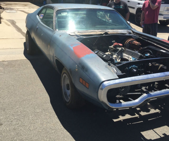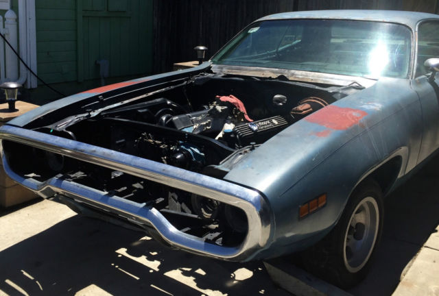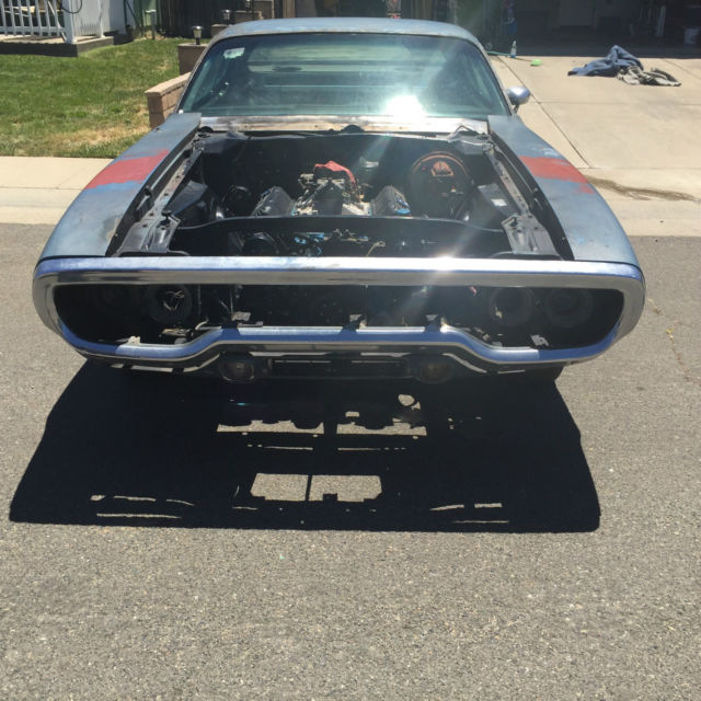 Complete car except for hood Rolling chassis Drive shaft not installed Minor rust Body straight and clean Have bumpers Under coated under carriage Painted engine bay All glass is in good shape Supension completed Rally wheels New radiator New gas tank Serpentine belt Front Valance Panels Floor pans and the trunk floor all restored and sprayed with rubberized undercoat 383 bored 60 over fresh motor! Complete! Straight from machine shop, fully assembled! Ready to start! Holley carb 4 barrel High rise manifold Electric fans Mopar valve covers Hooker headers Mallory ignition Have back bench seats Transmission and rear end complete Need front tires. Ours old from sitting No front seats Too much to list. Questions: email dustinturner49@gmail.com QUESTION:Hi,Do you have the grill,that dash is cracked isthere a different one? Since when did a 71 have belt tensioners,or is that something added?I had them years back then,in the 70.s never remembered,belt tensioners, has motor sat like that for Answer: Yes grill is in trunk. dash pad is cracked bit I have a dash board cap they call them it sits on top of dash pad to cover dash and looks like new. Belt system is a serpentine belt system one belt runs all primary an accessory pulleys I assembled the motor everything fresh out of machine shop. Internals head and bottom end all coated with oil been sitting for couple years garage kept see additional pics The interior needs completed needs front seats, headliner rear door panels and front upers. I redid interior with black dashboard Riley gauges new steering and steering wheel new heater core all new wiring inside dash OEM and brand new carpet also have new door panels for driver and passenger lower ones It is a nice project car I've had for years paint job and minor body work needed .engine rebuilt and needs wired and ignition and fuel system put on.