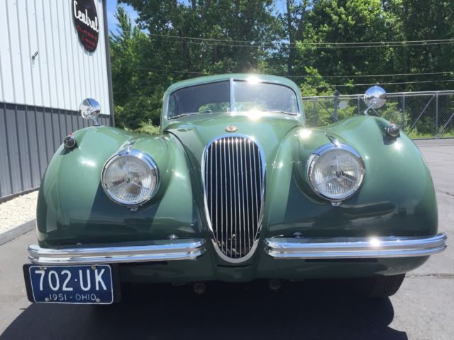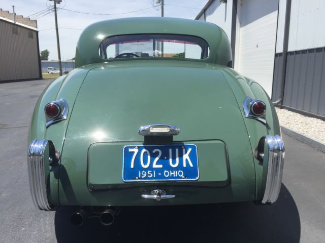 1952 JAGUAR XK120S FHC The XK120 Fixed head coupe was introduced in July 1951 for export markets and November 1951 for the home market. It was aimed further upmarket than the comparatively sparsely furnished roadster featuring decorative wood trim and wooden dash. Produced in relatively small numbers, and featuring an extremely stylish roof line reminiscent of the Bugatti Type 57 Atalante. The fixed head coupe is a much rarer motor car than the roadster and as such is highly prized by collectors. This fine example is numbers matching in exceptional condition having undergone a thorough restoration. The paintwork has been refinished to a very high standard in Suede Green (original color from new) and chrome/bright work has been replaced. The interior has been comprehensively refurbished including reupholstered seats and refinished decorative wood. The wiring harness has been replaced, the engine has been professionally rebuilt and a new stainless steel exhaust fitted, while attention has also been paid to the transmission, suspension and brakes. This stunning XK120 coupe is supplied with restoration invoices and heritage certificate from the Jaguar Daimler Heritage Trust. A rare and beautiful motor car. This XK120 is in excellent overall condition and will be a comfortable and reliable partner for your Saturday morning drive or that weekend get-a-way. 1952 Jaguar XK120 FHC Price: $119,900.00The XK120 was manufactured Sept. 5th, 1952, date of dispatch Sept. 12th, 1952, but titled as a 1953.All inspections must be done before the completion of the auction.The car is being sold "as is" with no warranty stated or implied.The Jag is being offered locally and on other web sites, we reserve the right to stop the auction before its conclusion.Please feel free to contact Chuck for more info and/or photos, 419-618-3855.