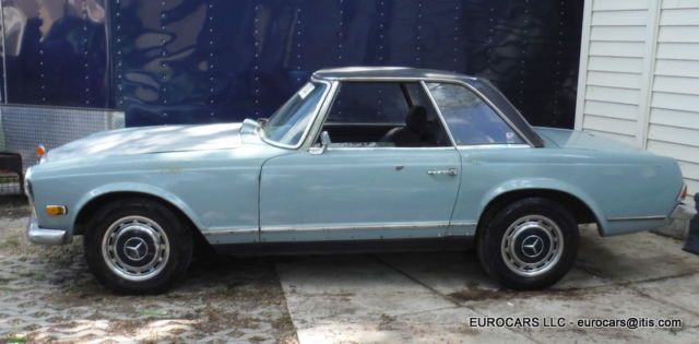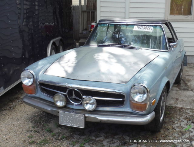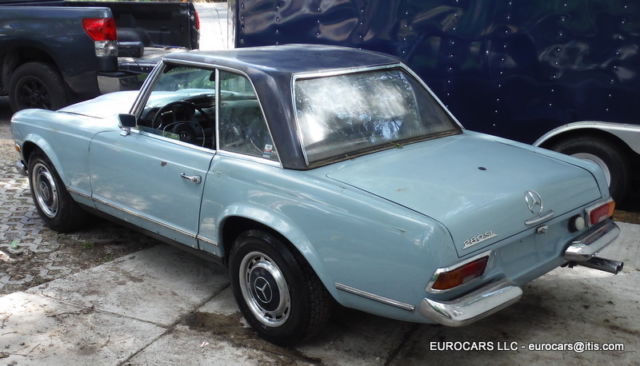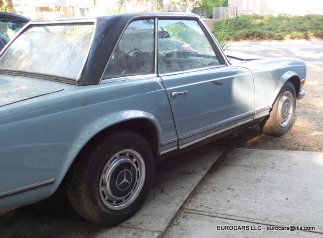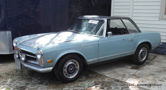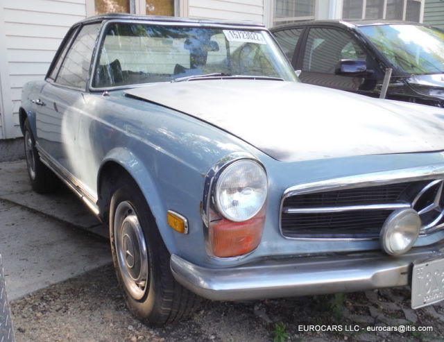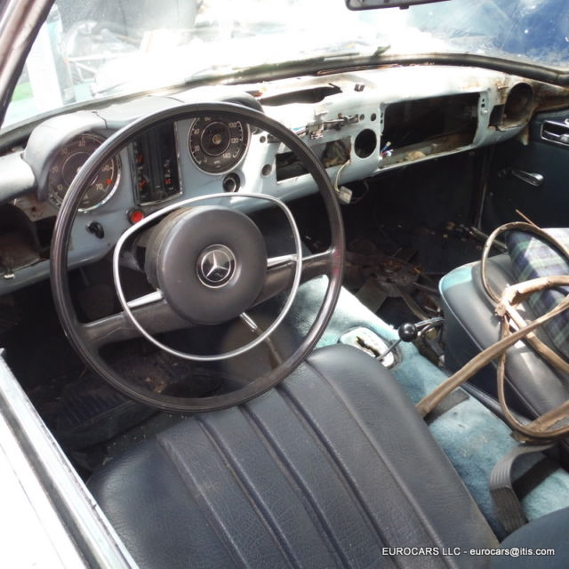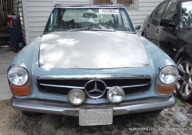 1969 MERCEDES 280SL Roadster - Hardtop - automatic transmission This car does not have the soft top frame only hardtop as shown VIN # 113 044 12 005010 Early 1969 build date Jan 1969 ! Engine was replaced at some time . Engine # 130 980 12 015615 280 SE (W108 E28 sedan and W111 E28 Coupe and cabriolet)9.5 CR Original color ! This car is a theft recovery from 2012 . When I got the car the following parts had been stolen off of it Hood -grille - bumpers -headlights - tail lights -radio - instruments -dash chrome - wood Soft top frame - soft top cover and "B" chrome caps - turn signal wiper arm - some dash pads glove box - some switches as well . I have replaced the Hood -grille - bumpers -headlights - instruments and some switches - tail lights and will also include the dash chrome - glove box - dash pads as well ( not shown on the car at this moment ) NOTE: Front headlight doors ( the plastic covers ) are broken and will need to be replaced the headlight bulb holders and sealed beams are like new - Tail lights are excellent as well Front bumper is ok but has some dings - extra driving lights are OEM Bosch lights as well . Hood is in excellent condition - bare aluminum so not much left to do except paint and finish mounting it . This is a very solid car to restore - I found no real problem rust issues at all on the body or on the frame and floors except some typical surface rust on a few areas where the factory undercoating has worn away . Trunk floor has some surface rust but is still solid and we painted it as well . Original excellent factory trunk mats ! Seats are in excellent condition just need a little cleaning but no rips or tears at all 1 door panel was removed but both are in very nice condition as you will see . Also missing a few dash panels and as before wood is gone but you can get one of those $500 repro kits ( I know you see them for $600 _$700 but really can get them for way less and they are the same supplier . Not sure why but the alternator is in the car as it was removed from the engine as well as the fan blade -- The engine turns over fine by hand . I cleaned it up and did a quick detail of it as well so it looks very nice - in fact I never understand why many of those $100,000 +++ 280sl's never clean and detail the engine compartments ! Ignition lock is messed up ( they had to do that to steal the car !!!! We will include an aftermarket ignition and key Good luck
