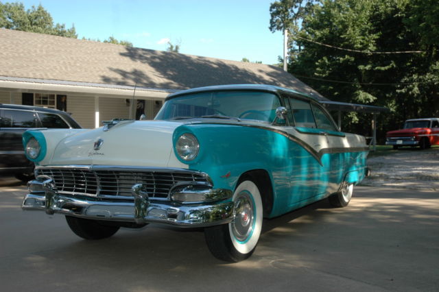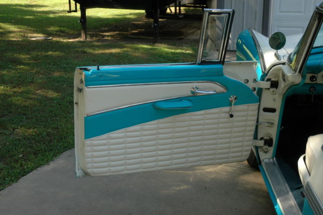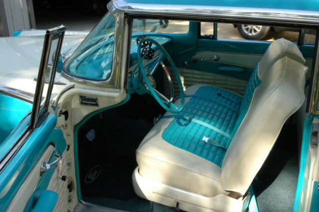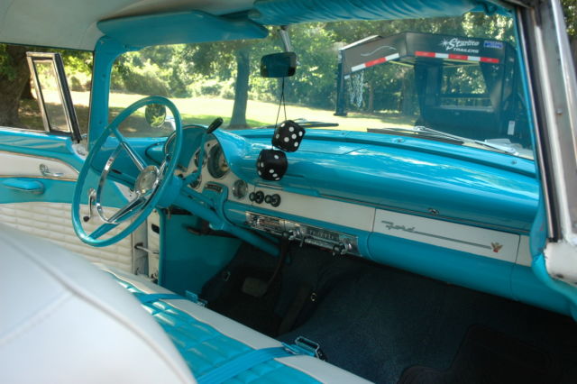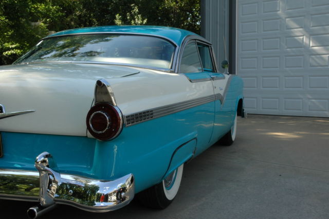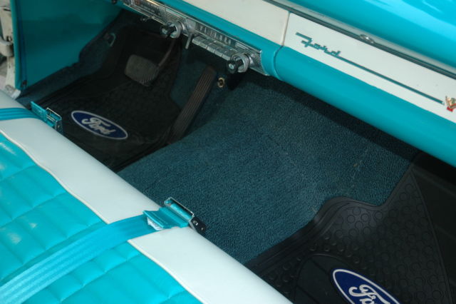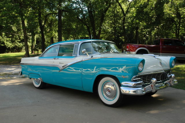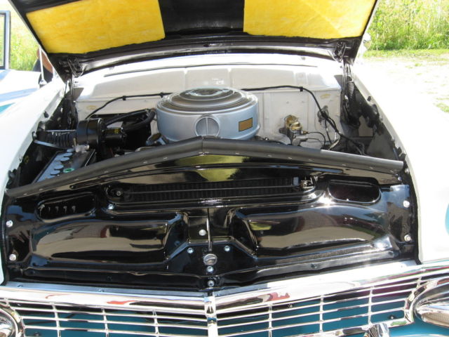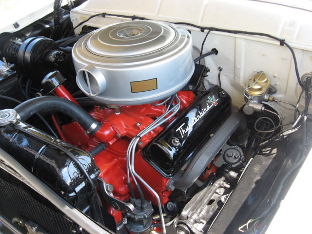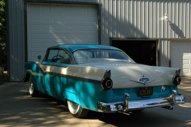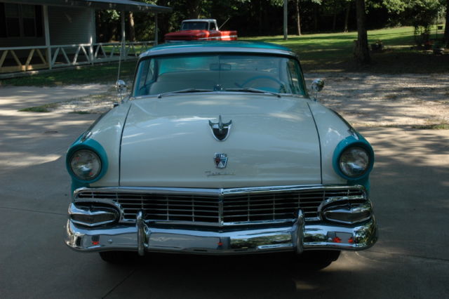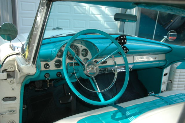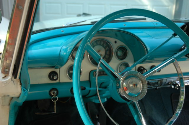 THERE IS ONLY 2,000 MILES ON THE FRESHLY REBUILT ECA-A 292 ENGINE WITH THUNDERBIRD ECZ-G CYLINDER HEADS. CORRECT ECZ-9510-A-LIST 1162 TEAPOT 4 BBL CARBURETOR (the carburetor was professionally rebuilt by one of the best in the business). NEW VACUUM AND FUEL LINES, RESTORED 4 BBL AIR CLEANER, EXHAUST MANIFOLDS EDB 9431 A&B.THE ENGINE RUNS VERY GOOD AND SOUNDS STRONG. MUCH MORE DONE UNDER THE HOOD, ALL CORRECT AND ORIGINAL RESTORED, AND ORIGINAL PAINT COLOR - PEACOCK BLUE AND COLONIAL WHITE. THE ENGINE WAS REMOVED AND PROFESSIONALLY REBUILT WITH DETAILED WORK ORDER THAT WILL GO WITH THE CAR. WHILE THE ENGINE WAS OUT, THE ENGINE COMPARTMENT WAS REPAINTED. SEVERAL WIRING HARNESSES WERE REPLACED. NEW BATTERY TRAY, BATTERY HOLD DOWN, AND NEW BATTERY CABLES WERE ALSO ADDED.THOUSANDS OF $ SPENT AT LARRY'S T-BIRDS PRODUCTS, DENNIS CARPENTER, PLUS INDIVIDUAL PARTS SUPPLIERS FOR NEW ORIGINAL PARTS, AND I HAVE A FOLDER OF RECEIPTS THAT WILL GO WITH THE CAR TO PROVE THIS AS WELL.THE CAR HAD A NEW FULL INTERIOR REPLACED WITH THE EXCEPTION OF THE HEADLINER WHICH LOOKED GOOD AT THE TIME SO IT WAS NOT REPLACED, HOWEVER IT IS STARTING TO COME LOSE AT THE TOP REAR CORNERS, WHICH I WOULD IMAGINE IS THE 60 YEAR OLD GLUE TURING LOSE.THE PAINT IS ABOUT 6 YEARS OLD, BUT STILL LOOKS GREAT AND SHINES BEAUTIFULLY BUT THERE ARE A FEW MINOR FLAWS.1956 MERCURY TRIM WAS ADDED WHICH REALLY MAKES THE CAR STAND OUT AND GETS A LOT OF CONVERSATIONS STARTED. THIS TRIM ALONE IS $600.NEW REAR VIEW MIRRORS WERE ADDED ALONG WITH CORRECT ANTENNA, NEW STONE GUARDS ON THE FENDER SKIRTS. IT ALSO  A NEW "FAIRLANE" TRUNK EMBLEM BEZEL, NEW FAIRLANE HOOD SCRIPT, NEW TRUNK MAT, CORRECT SPARE TIRE RETAINER AND WING NUT.NEW HEATER CORE, AND THE RADIATOR WAS SENT OUT AND RESTORED. THE RADIO IS THE MUCH DESIRED TOWN & COUNTRY RADIO, AND IT LIGHTS UP, HOWEVER I NEVER HOOKED IT UP TO THE SPEAKER TO SEE IF IT WORKS. THE CAR HAD AN AFTER MARKET RADIO WHEN I GOT IT, WHICH I REMOVED.THE UNDERCARRIAGE IS SOLID WITH NO RUST. BUT COULD USE A LITTLE TOUCH UP AND THE VENT WINDOWS NEED REPLACED. MY RESERVE IS LOW ENOUGH TO ALLOW PLENTY OF $$ ROOM TO DETAIL THE UNDERSIDE AND REPLACE THE WINDOWS. A $500 DEPOSIT IS DUE WITHIN 24 HOURS OF AUCTION END.I HAVE DONE MY BEST TO DESCRIBE THE CAR AND LIST EVERYTHING. CONTACT ME AT 417-529-8475. THANK YOU FOR LOOKING, KEVIN