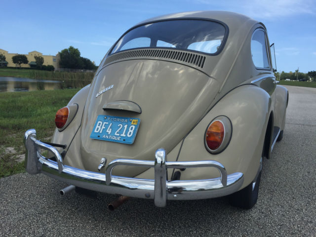 In The Early Spring Of 1966 John Lueck of Bellerose New York Decided it would be best to travel Europe in a new Volkswagen Beetle. Placing an order to take European delivery after touring the plant. He did just that travelling Europe with the small wonder showing the sights...Later in June the Beetle arrived in the Us after the voyage to its new home according to the owner documentation to be enjoyed. Maintenance: This Very Nice Beetle is in Very Good Condition. It had a new 1600 Dual Port Engine Installed at 18697 miles 06/24/04. A headliner in April the Same year,and the current owner installed a Custom Bendix Sapphire Radio with modern inputs and new speakers to listen to 08/10/2015. Fluids are clean. All safety items are functioning properly.This Beetle drives very well. Condition: The car shows some light patina, has what appears to be original paint in good shape although wearing through on the right front a little. It appears all original. The current owner has shown it at the local museum and received a survivor award. Not a restored car. Nice survivor.Good Condition. Location: The vehicle is located at Florida Classic Automotive LLC 3186 Se Waaler St Stuart Fl,34997 for inspections which are welcomed prior to bidding or making offers. This car is a consignment by the current owner( She really does not feel pressed to sell such a nice find,but has ambitions to travel and move forward candidly). Our email is info@floridaclassicauto.com or Phone:772.215.3512 . Someone is going to be a proud new owner!