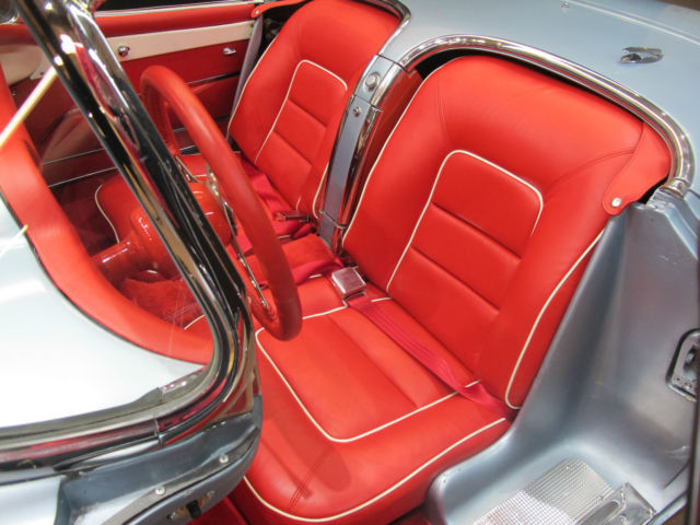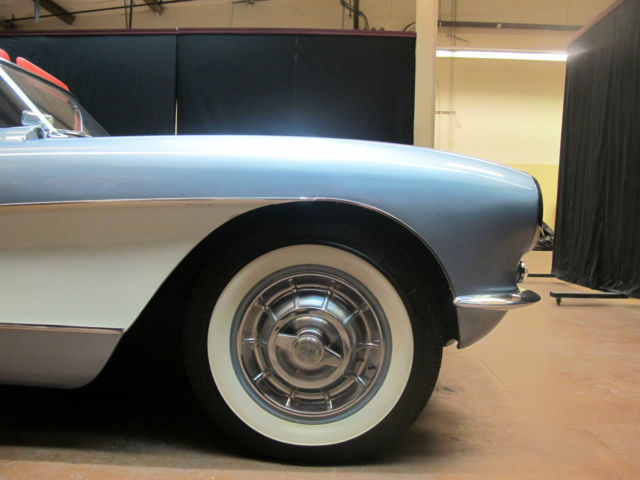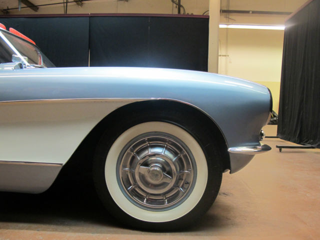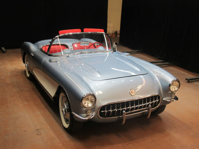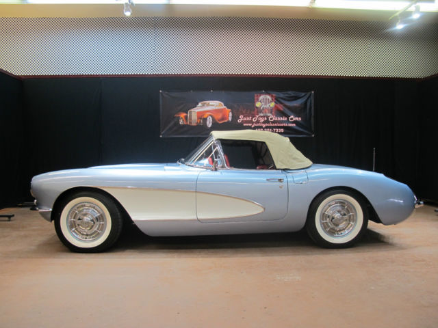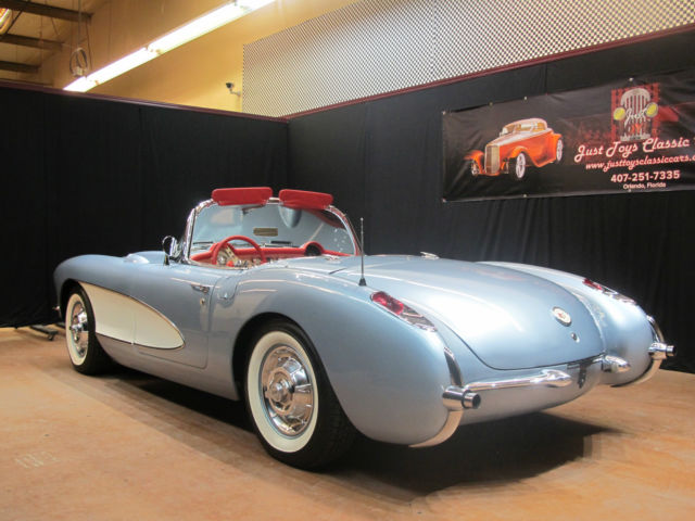 Just Toys Classic Cars is very proud to present this stunning 1956 Chevrolet Corvette Convertible. This is one of those blue chip collectibles that they speak of. This is the car that you replace your 401k or your kids college fund with. This is the car that you always see on the rise and never falling in price. The body lines on this car are iconic and timeless. You can not drive this car and not help but have hundreds of people come up to you and wanting to talk with you about it. The body is as solid as it gets on this one. This is an original California car when it was sold in 1956. There have been less than a handful of owners on this car since it was new. This is only one of 390 cars built in 56 that got Arctic Blue Paint, and one of only 172 that got two tone paint. The coves were originally silver and they were changed to the color you see here. This car has only been redone once. It has been upgraded with a power brake system with 4 wheel disc brakes that makes it stop on a dime, power steering, and a vintage air system that will allow you to drive this in any time of the summer in comfort. As you go in to the interior, the beauty just continues. The red leather interior with the white piping on the seats is as elegant as it gets in this car. All of the gauges are new and the miles shown on the car are believed to be original. There is an upgraded radio in the car as well so you can listen to all of your favorite tunes as you roll down the road. It is the original 265/240 hp dual quad motor matted to the original 3 speed manual transmission, and out to the original rear end. We have all of the casting numbers for all of the important parts to show that it is the real deal. We just can not say enough about how absolutely gorgeous this car is and can not emphasize enough how this needs to be in your collection today. We could go on and on about everything in this car and just how special it is. You just don't see them in this condition very often. We offer classic car financing for those that would like to take advantage of this option. We look forward to speaking with you soon and we look forward to making you the newest member of the Just Toys Classic Cars family. Full picture profile can be viewed at justtoysclassiccars.com