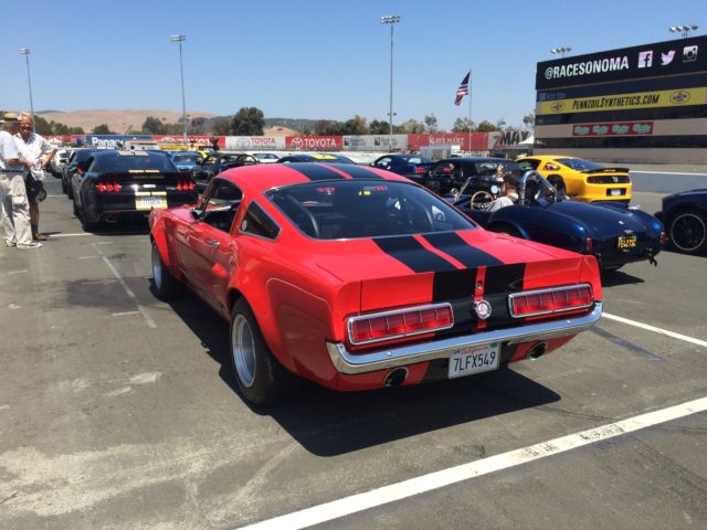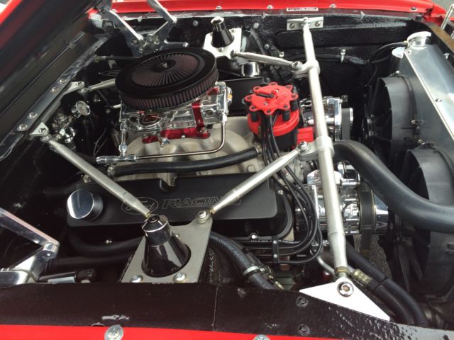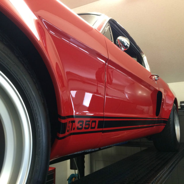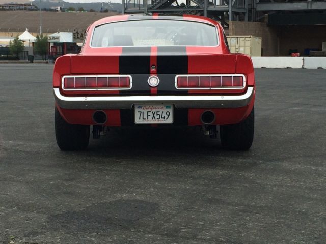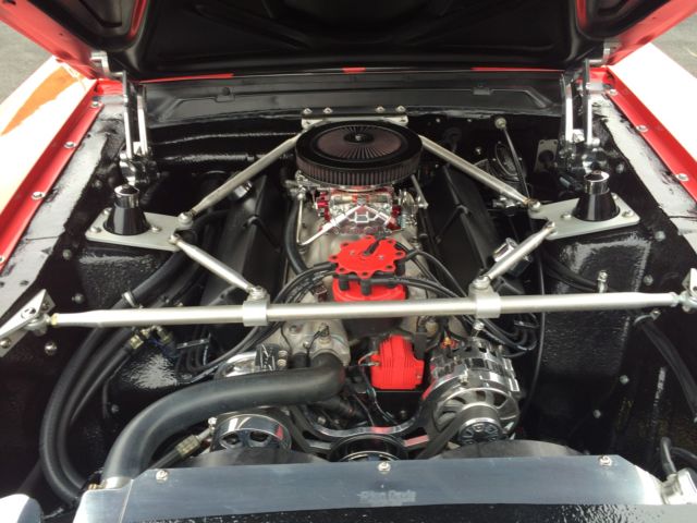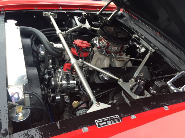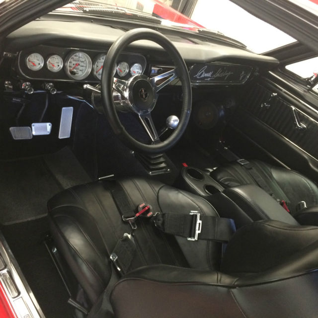 EXTERIOR Outstanding custom R body, perfectly straight with two stage Ferrari Red and Black under clear. Exceptional panel alignment with no blemishes. Features Shelby R front valance and hood, 4" fender flares, molded side scoop and quarter extensions,, Shelby prototype rear spoiler, 68-70 Shelby tail lights. All new stainless trim, lights, mirrors, door handles. etc. ENGINE BAY 392 Windsor "Ford Crate Engine" 475 HP, 495 F.P. Torque, forged crank & rods, hydraulic roller cam, aluminum Z heads, Victor Junior intake, 750 cfm Quick Fuel carb, MSD ignition, Elec. Holley blue fuel pump with pressure regulator and braided lines. Billet Specialties Tru-Trac serpentine belt system with Polished Vintage Air compressor, Power Master alternator and CVR Protorque starter. Polished power steering pump and tank , radiator and overflow tank, Moroso 9 qt baffled oil pan, Sanderson Try Y headers, 2-1/2" Flowmaster exhaust. Ron Francis radiator with dual elec. fans, Wilwood dual master cylinder with bias adjust. Billet hood hinges, and misc billet accessories DRIVE TRAIN Tremec TKO 3550 - 5 speed transmission, cable actuated kevlar organic 10-1/2" clutch, Hurst shifter, Quick Time scatter shield bell housing, Custom drive shaft, TCI- Fab 9 rear housing with 350 Strange gears and Currie axles, Wilwood 4 wheel disc brakes with stock actuated emergency brake 10" and 8-1/2" Torque Thrusts with Mickey Thompson S/R radials, custom caps SUSPENSION & CHASSIS Complete: TCI - adjustable shock tower brace system TCI - G Connector sub-frame system TCI - G Bar Vari-shock double adjustable coil over rear suspension system TCI - Vari-shock double adjustable coil over front suspension system TCI - power rack and pinion steering system TCI - engine and transmission mounts INTERIOR Mostly new everything - includes fresh carpet, Pro-Car seats & console, polished stainless Flaming River tilt column with Moto-Lita leather steering wheel, all new handles, trim ,mirror, sill plates, lights, vent window assemblies, Simpson 5 point quick lock harnesses, chrome fire ext, new 3 channel stereo with i pod & cd connect, trunk installed amps & subwoofer, billet pedals, Autometer 6 guage panel, central controlled heat and a/c, Painless wiring harness and fuse panel, and more. SUMMARY Car runs and performs perfectly with no leaks or creaks and everything works correctly. Continually maintained with an extensive record of new parts. Additional detail pics are available. Car is available for inspection anytime with appointment.