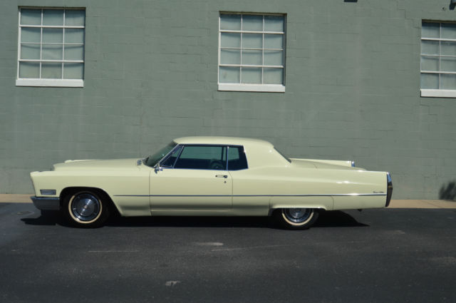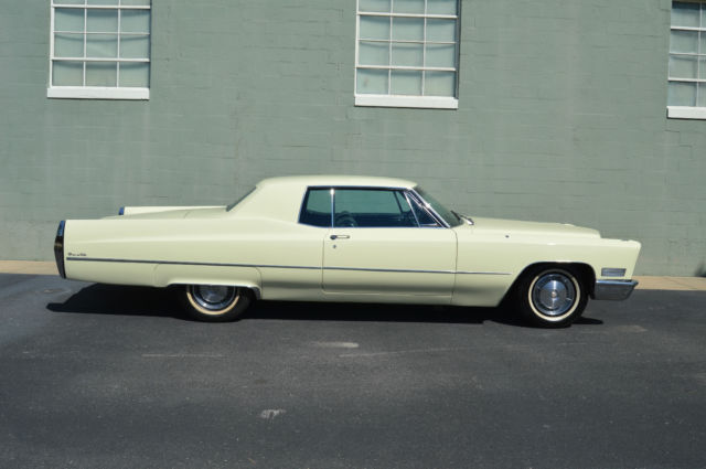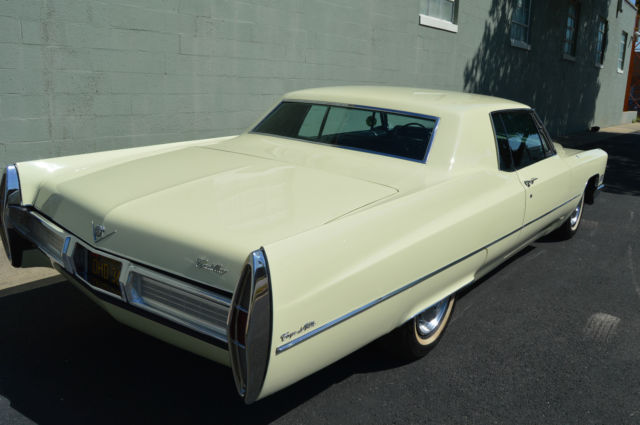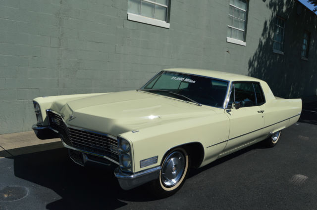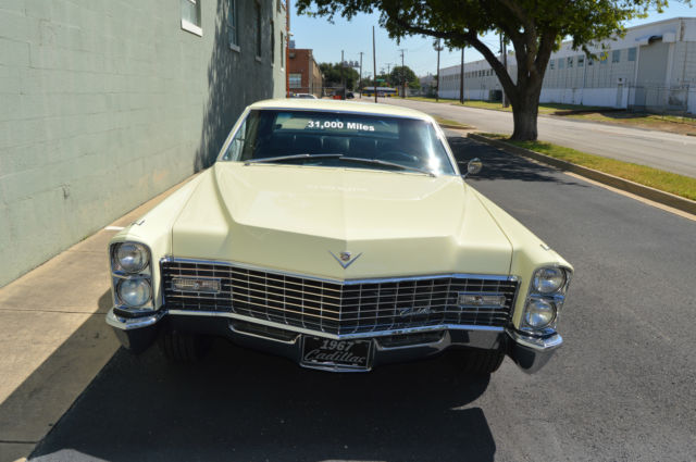 1967 CADILLAC COUPE DEVILLE PERSIAN IVORY WITH BLACK LEATHER 30,854 ORIGINAL MILES RUST FREE EQUIPPED WITH: 429 CI /340 HP V8AUTOMATIC TRANSMISSIONPOWER STEERING AND BRAKESPOWER WINDOWSPOWER SEATPOWER ANTENNAAUTO DIMMING HEADLIGHTSAIR CONDITIONING UPGRADED TO 134AAM/FM RADIORADIAL TIRESFULL HUBCAPSLEATHER SEATSFULL SPARE WITH TOOLSORIGINAL OWNER'S MANUAL EXTERIOR: ORIGINAL COLOR REPAINT LOOKS GREATBODY IS STRAIGHT AS AN ARROWPERFECT FIT ON DOORS, HOOD, AND TRUNKGOOD GLASS AND CHROMESTANDS OUT IN A CROWD INTERIOR: ORIGINAL SEATS ARE MINTNO CRACKS IN THE DASHDOOR PANELS AND HEADLINER ARE PERFECTORIGINAL CARPET LOOKS NEWCOULDN'T GET MUCH NICER INSIDE MECHANICAL: STARTS EASILY AND RUNS SMOOTHLYTRANSMISSION SHIFTS CORRECTLYBRAKES FUNCTION AS THEY SHOULDALL POWER EQUIPMENT WORKSENGINE COMPARTMENT DETAILEDNEW TIRESNEW CARB REPLACEMENTRECENT AC UPFITCAN BE DRIVEN WITH CONFIDENCE ONE OF THE NICEST CADILLACS AROUND A BEAUTIFUL SURVIVOR PRICED TO SELL ANY QUESTIONS? PLEASE CALL DAVID WAYNE AT (214) 926-5621 THIS CAR IS FOR SALE LOCALLY. WE RESERVE THE RIGHT TO TERMINATE THIS AUCTION AT ANY TIME. ANY QUESTIONS? PLEASE CALL DAVID WAYNE (214) 926-5621The seller shall not be responsible for the correct description, authenticity, genuineness, or defects herein, and makes no warranty in connection therewith. No allowance or set aside will be made on account of any incorrectness, imperfection, effect or damage. It is the responsibility of the buyer to have thoroughly inspected the vehicle and to have satisfied himself or herself as to the condition and value and to bid based upon that judgment solely. The seller shall and will make every reasonable effort to disclose any known defects associated with this vehicle at the buyerâs request prior to the close of the sale. Seller assumes no responsibility for any repairs regardless of any oral statements about the vehicle.We require buyer to pay $1000.00 NONREFUNDABLE deposit only with PayPal at end of auction. DAVID WAYNE ENTERPRISES LLC SOLD AS IS- NO WARRANTY