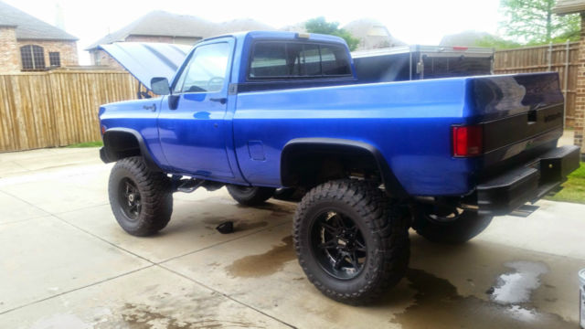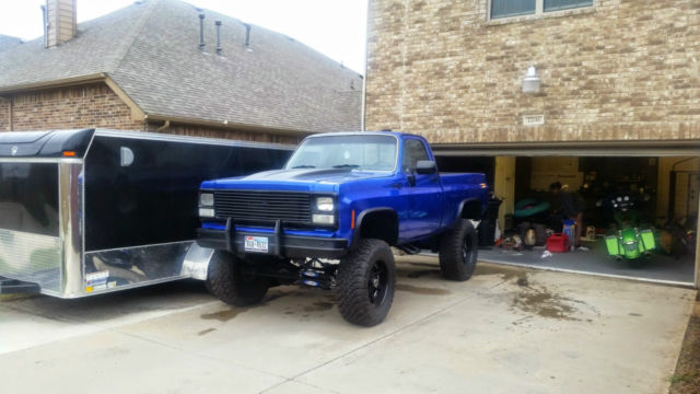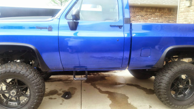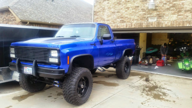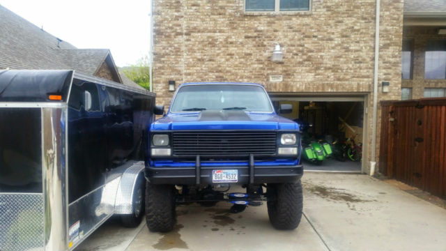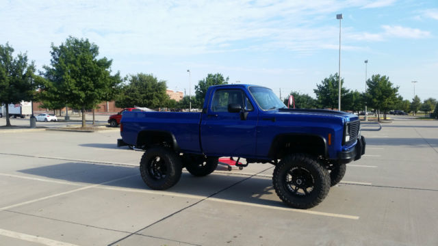 -New 4 inch body lift -New 4 inch suspension lift -Black powder coated grill, mirrors, front and rear bumper -New hood, fenders, doors, and box -spray in bedliner -new carpet and re-upholstered seat -New headliner -New 2 inch custom exhaust. - rebuilt 350 bored to a 383 -New aluminum headers -New Holley 750 double pumper carb and highrise manifold -fuel injection system new in the box sold separately if your interested -new gas tanks -New battery -New 38 inch wheels and tires that have less than 100 miles on them. The cost was $3800.00 mounted and balanced. -New Brakes all the way around -The entire truck was taken apart to paint it Dodge Viper blue. The paint job alone was $7000.00 There are two things that need to to be addressed on the truck, both the passenger and drivers windows need to be adjusted for smoother travel up and down the window channel and the headliner which is new needs to have the cloth that goes over it adhered to the headliner pad, the headliner pad is new and installed properly they just didn't adhere he cloth cover very well and it's starting to sag a little other then that the truck is as nice as it gets, it took the restoration team 2yrs to complete and I have well over $40,000 invested I am selling it for economic reasons only but I am not desperate to sell it so if you want the nicest 1978 Chevrolet short box 4x4 on the planet this is it!!!
