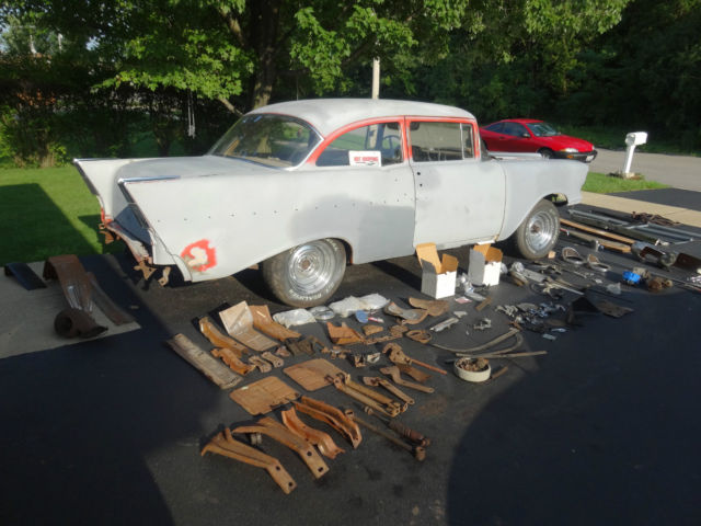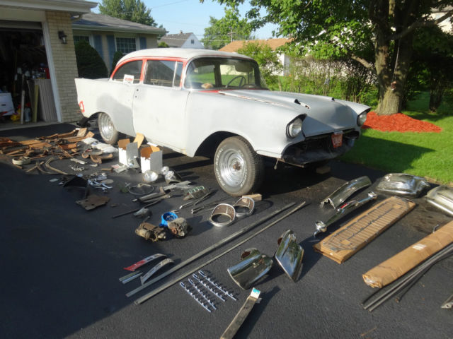 1957 Chevy Bel-Air Classic Base Chevrolet 2-Door Hardtop Got title From IL in 1991 Comes Clear Ready to GO! Even Comes with the original Title Plate that Goes in the Glove Box! Title Plate A57J283427 Lots of Money and Time went into this car and Storage for 29 years is priceless lol Has 1972 - 350 turbo 350 trans Nova Motor V8 Installed Motor Will Run and Car will drive But needs some parts installed before that Can Happen! Must Be Towed Away! Buyer is Responsible to Come and Pick it Up Hidden Garage Gem Had this Stored for 29+ Years Comes with Everything Shown In Pictures Call us anytime with Question -708-752-1031 Notes: New Floor Pans Whole Body almost Primed and Sanded All Bumpers Re-chromed or New American Ones no Jap Most side Chrome Trim Is included! Window Trim kit included Windows in good condition 1 Crack in side on Doors open an close right New Shocks New Rims and Tires new with Center Caps 4x new chevy logos 2x new tail lights new side mirror