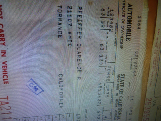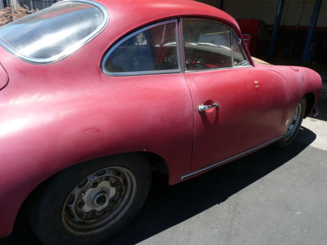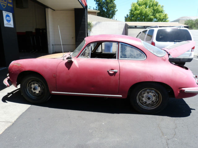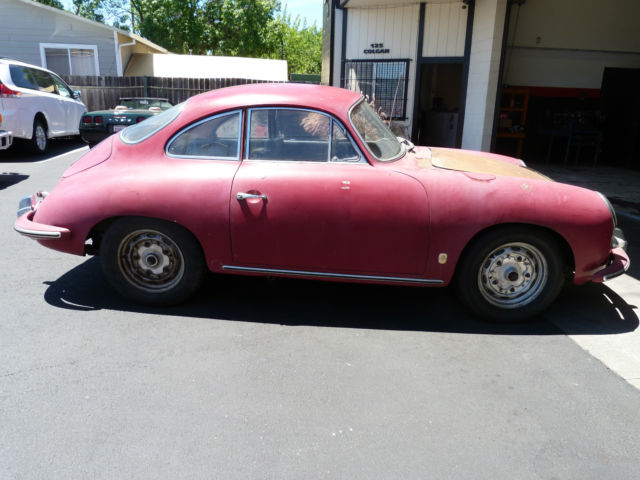 1963 PORSCHE 356 B Purchased new in Germany in 1963 by an American engineer who was stationed and working in Germany. After one year he moved back to California. Car was in Southern California and then he moved to San Francisco where it was parked in his garage and not driven since 1977. He owned four cars and only had room for two in his garage and one in his driveway. He knocked out a wall which was a bedroom and parked the Porsche there. This car is original including the paint. 82,500 miles shows on the odometer. The car has brand new VERDISTEN tires and tubes. The gas tank has been removed and cleaned and the fuel petcock has been rebuilt it has new fuel lines, new fuel filter, new spark plugs and ignition wires along with the cap and rotor. New air filter elements. The carburetors have been rebuilt and a new clutch installed. The fly wheel has been resurfaced. A new bushing for the gear selector has been installed. It also has a new battery and new coil (6 volt) The fuel pump has been rebuilt and a new brake master cylinder installed 3 of the wheel cylinders have been rebuilt and the right rear has been replaced with a new one. It comes with the original CA pink slip issued in 1964. The stiching in the leather seats are separating a little bit, this is an original un molested survivor car. Drive it as it is or do a complete restoration-your choice. Correct date coded wheels. Floor pans are original and rust free.
