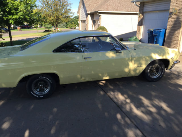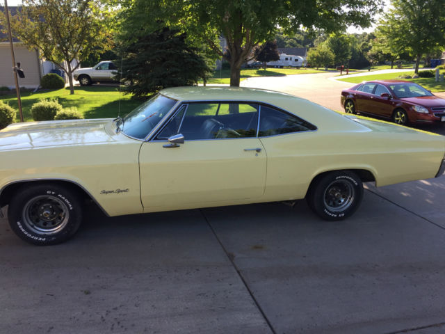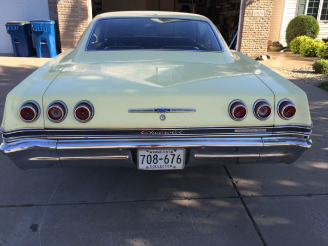 1965 Impala SS Here are the items I addressed to get the car running. New fuel tank with new sender.New exhaust manifold gasketsNew valve cover gasketsNew lower radiator hoseNew belts & power steering hosesNew water pump and heater hoses.New plugs, Cap & Rotor.New exhaust pipe (using the glass pack mufflers that were on the car) exiting in front of the rear wheels with stainless tips. Installed a carb kit and thermostat.Changed engine oil and filterNew MSD spark plug wires ( the wires in the photo are ones I took off) Installed 2 new wheel cylinders and rubber brake lines on the front. Bled the brakes. I have driven down the road, transmission seems to shift well and it drives straight. Without knowing all the history, and in summary, this would make a great driver or an excellent candidate for a beautiful classic restoration. The body of the car is in good shape and what I would describe as solid. It appears there has been work to the left rear quarter panel and the left rear rocker area. Beyond that, it can be difficult to tell since the paint job is certainly not show quality and you can see areas where the surface was sanded before paint. The trunk is rusted from the pad, I suppose after sitting with moisture as this also caused the rear window deck to rot. I threw both items out. When looking under the car, there is no rusting through any panels with the exception of the trunk. The frame is in great shape! Again, it would appear to be a great candidate for a frame off restoration. The tires hold air but are weather cracked. The wheels are not original, but I do have the original SS hub caps. I will let the photos speak for themselves. Keep in mind the car is over 50 years old! Note that front upper windshield trim is in the back seat, needs to be installed. My plans were to restore, but time to do so is the challenge. Good Luck!