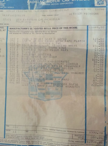| Body Type: | 2 Door Convertible | Trim: | 6EL67 Fleetwood Eldorado Convertible |