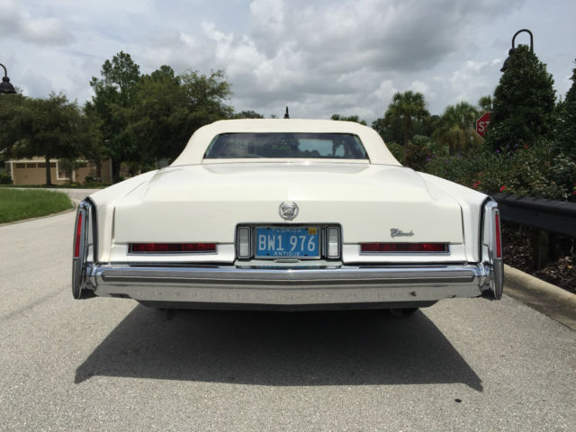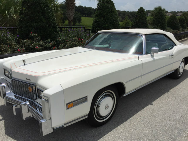 So why am I selling this awesome original Eldorado Convertible. Its simple, Im just not a CADDI GUY. I purchased the vehicle because I was at the right place, at the right time, and recognized both the opportunity and value of this classic. I never planned to keep it long and have no indoor storage available (its a great car but its never going to take the spot from my Mach 1 in the garage). I purchased it from a gentleman whom I know and trust at a very fair price. I had a lot of fun and spent a respectable amount of money on the leather restoration, new carpet, floor mats and tires. My wife and I drove it in the 4th of July Parade and have taken it on several dinner dates and it is a truly fun and attractive car. If your a Caddi Guy, your going to love this car because you can drive it anywhere, get lots of compliments and you don't have to do anything to the car. If your a Caddi restoration guy, you will not find a better original platform to work from. The Hagerty Classic Car price guide puts the average value of this car at just over 26k. I have it priced very reasonably, for that Caddi Guy, at $ 19,500.00. I will consider reasonable offers above eighteen thousand dollars only. I do not need assistance in selling the car unless you want to tell your best friend, who's a CADDI GUY, where to find it on ebay. I am not a dealer, wholesaler or flipper, if you are and your also a CADDI GUY you may contact me for a full price purchase. The vehicle is located in MT Dora Florida and is also for sale locally, AS IS, Where it is, with no express or implied warranties. All transportation, shipping and taxes are the responsibility of purchaser. I will make the vehicle available for inspections to perspective buyers or their representatives in the area of Mt Dora Fl., at reasonable times as my schedule permits. If you have questions, please email me for a contact number or appointment to see the car. Thanks ( I hope a Caddi Guy gets this car!)