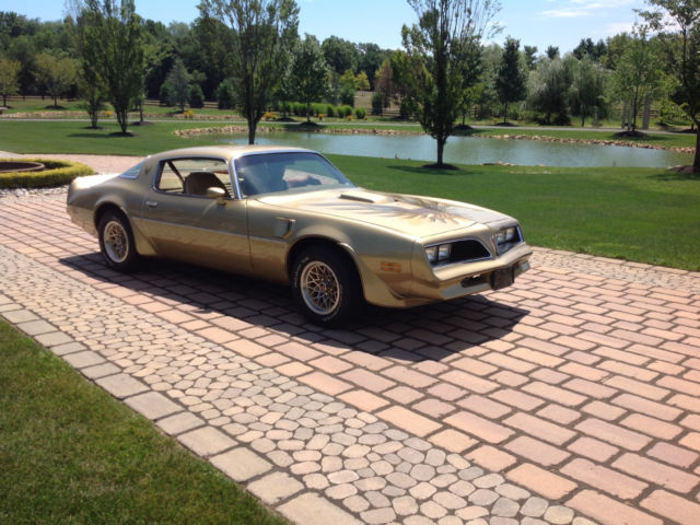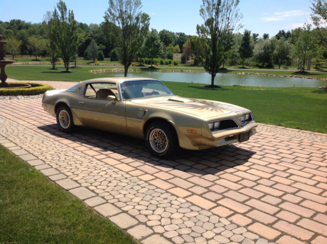 1978 Pontiac Trans Am loaded with all the right options in mint condition. interior is all original in mint condition with never any repairs or smoking burns. The original driveline has been completely rebuilt to factory specifications. exterior is spectactular condition. Looks great and runs as new. show ready. Car is fully documented from build sheet to original bill of sale, order sheet, which all will come with purchase. here are a list of its options: 1978 Pontiac Trans Am Solar Gold paint Carmel custom interior trim Carmel trim appointments Body side moldings Saf-T-trac differential Posi-traction Custom Air conditioing Custom colored seat belts carmel Console Cruise Control Electric rear window defroster Rally gauges with Tachometer Soft ray tinted glass Hood decal Lamp group luggage,glovebox,courtesy under dash Remote control sport mirrors Roof drip moldings Power windows Radio accommodation package Stowaway spare tire with inflater Rear deck spoiler Formular steering wheel Steering wheel tilt Trans Am special performance package 6.6 Liter 400 cubic inches 4bbl V-8 Cast aluminum wheels 8 inch width 225 / 70R / 15 inch white letter tires steel belted radial tires Special WS6 handling package special gold wheel package Super cooling radiator Custom trim group gold buckets,rear seats Door handle ornamentional Pedal trim package Custom interior appointments Automatic transmission