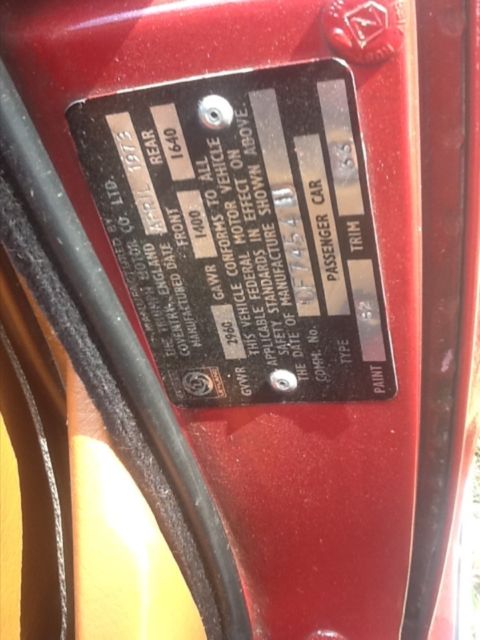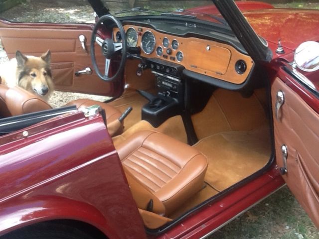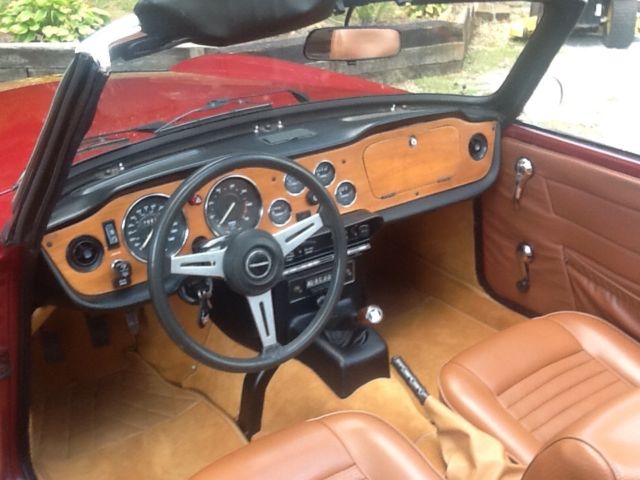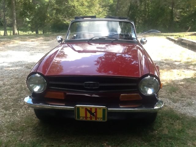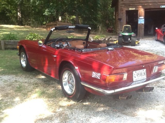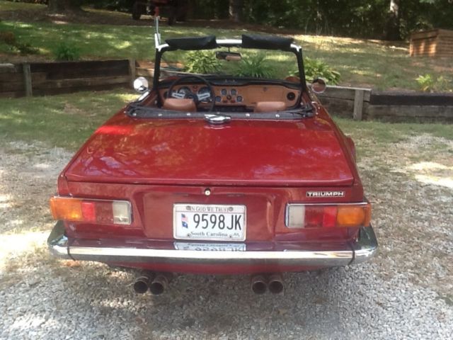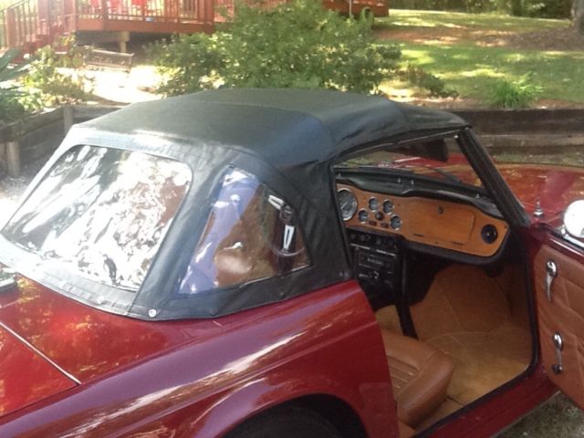 She's a "Burgundy Ext / Tan Int / Black Top; All in Excellent condition. She had a professional tune- up within the past 100mi. That included "NEW" Battery, Coil, Plug Wires, Plugs, Points, Condensor & Cap. Oil change & filter done at this time. She registers "130lbs" compression across all 6 cyl. Oil pressure reads "70-75" on cold start as well as warmed up & running. She runs nice & cool (170-175) even in our 90+ deg days. She runs on "Redline Radials" with good tread. Her spare is an Orig. 4 ply tire on a like new rim. She also sports a "Monza" free flow dual exhaust system & has her Orig. "British Leyland" AM/ FM working radio but missing tuning knobs. She has some minor paint bubbling on the top of the drivers rear quarter (See Pic). Balance of the car to include her undercarriage is solid & rust free. I have a clear SC Title in my name. Her VIN is: "CF7454U" showing approx. 70.5k mi. Overall a great looking, driving Southern TR6. Buyer is responsible for all shipping costs. There is no warranty implied. She is being purchased in as is, where is condition. She is a "High Quality, Low Cost" TR6, last year of the chrome bumper version with one of the most desirable color combinations. A $500.00 deposit via PayPal due immediately at end of auction. Balance is due in full via Cash, Bank Money Order or Preferred Bank Direct Deposit within 3 business days of close of auction. "THANK YOU FOR LOOKING & HAPPY MOTORING"
