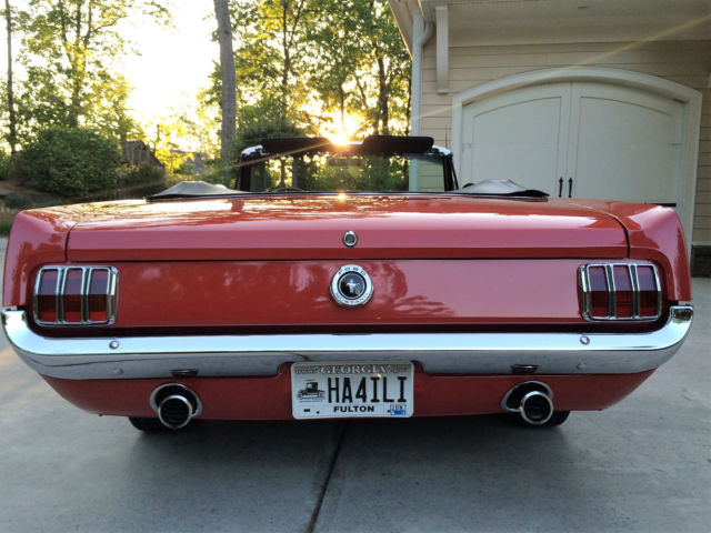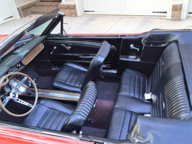 This is a great Mustang Convertible. I've owned this car for almost 9 years. It's been a joy to own and is not problematic at all. I'm only selling it because my family is moving on to the next stage in life and we're buying a boat. Great color: Red with black interior and a white top. The car is not flawless, but pretty close to the naked eye. In the spirit of full disclosure, the flaws are a few tiny nicks in the paint, carpet is a little faded from the sun, the wood on the steering wheel was repaired before I got it, and a few snaps are missing from the convertible top boot cover. Those are the only things I'd address on this car. About 2 years ago, I had new brakes installed, to include new discs in front and a master brake cylinder; new battery; a new coil; new distributor; new Holley 4 bbl carburetor, new radiator and fan; and a new high powered radio that is designed to look like the classic Ford radios (the radio has Bluetooth for music and hands-free phone calling, as well as a USB port); new Edelbrock shocks and BF Goodrich tires were installed about 7 years ago and have less than 500 miles on them. The electric top works great, the trunk is nice and clean, the car shifts nicely, and starts right up. The engine has the Cobra valve covers and air cleaner. No A/C or power steering. The car originally did not come with seat belts in the back seat. I had them installed in the back seat to factory specs and replaced the ones in front too so they would match. Pretty much everything has been replaced on this car during the 90's restoration and my ownership. It is ready to enjoy. I have a clear title in hand and current vehicle registration. This vehicle is being sold as-is. I also have most of the receipts for the major work done to the car. I also have an owners manual and Mustang repair book that I'm including with the car. The car was restored back in the 90's before I got the car. I have most of the receipts from that as well. Please send me your email address if you'd like to see a PDF of the receipts. I can help coordinate with shipping if you are out of town. I have shipped 3 cars before and it's easy and affordable. Buyer is responsible for shipping costs. I am a private seller, not a dealer, so while I have an eye for classic cars, I'm not an automotive professional. ***** Please do not contact me regarding any advertisements or solicitations. No consignment calls please. *****