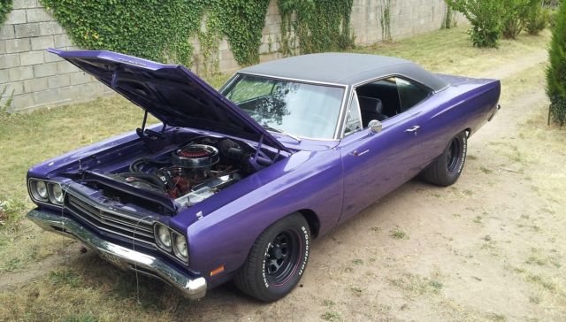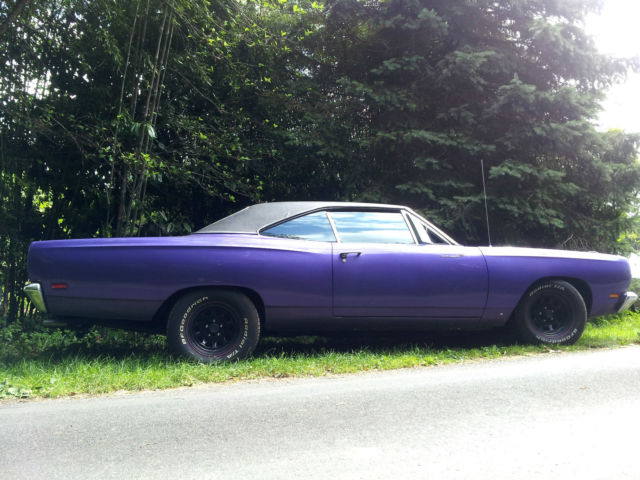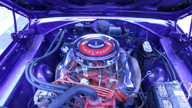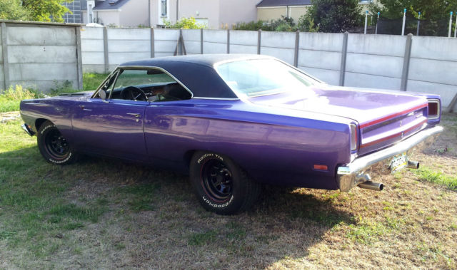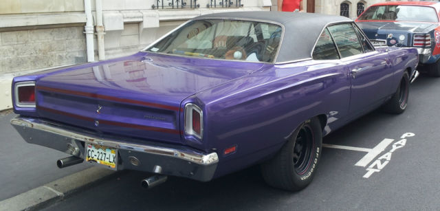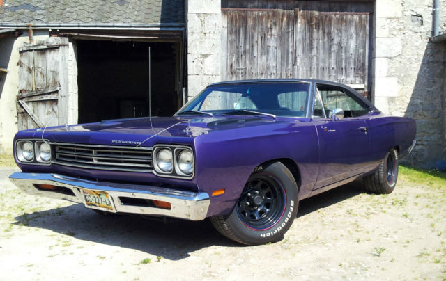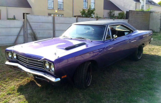 For complete process, you must take your own professionnal Mandatary to import the car. Be carrefull : I'm not a professional myself, so if you take one, additional fees may apply. Take your own informations about it.Very clean, excellent condition,Plum crazy,original 383 cid ( matching number ),TF-727 automatic transmission,Edelbrock 650cfm 4 barrels,dual exhaust,power steering,standard brakes,standard geared 3.23 ( I also have a 3.90 I give for free ),locking axle differential ( both rear wheels turn together )8 3/4 rear end,crank windows,black vinyl top ( very clean ).Seats like new.No rust nowhere.NASCAR rims type for a nascar look. Bad-ass !New BatteryNew distributor, wires and spark plugNew performance rear leaf spring ( better than OEM )Ultrasonic washed carb ( like new now )New air filter and air cleanerNew alternatorNew ignition coil, ballast, etcNew beltNew throttle cable and bracketEngine and trans Oil / Cooling are changed regularlyAlso new Axle oiland some others little thingsClean french title. I have a copy of the previous US title car before I imported it. Have 60 pages of reciepts for almost everything done to car.Car runs and drives excellent.Transmission shifts properly and firm.Steering is tight, brakes good.Electrical is good, no problem.All Tires are good ( less than 5000 kms / 3000 miles ) 235/60 R15 front and 275/60 R15 rear.SHIP WorldwideI think for a total around $32000 included shipping is a good deal among most 1969 Roadrunner selling on US ground.
