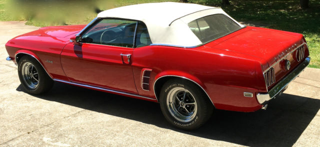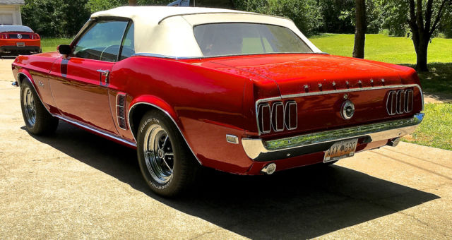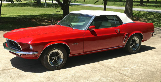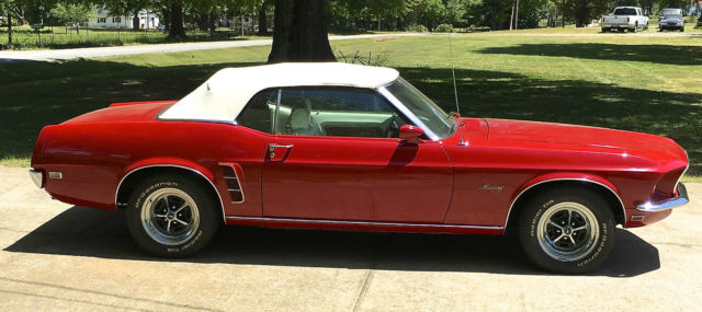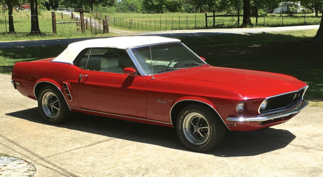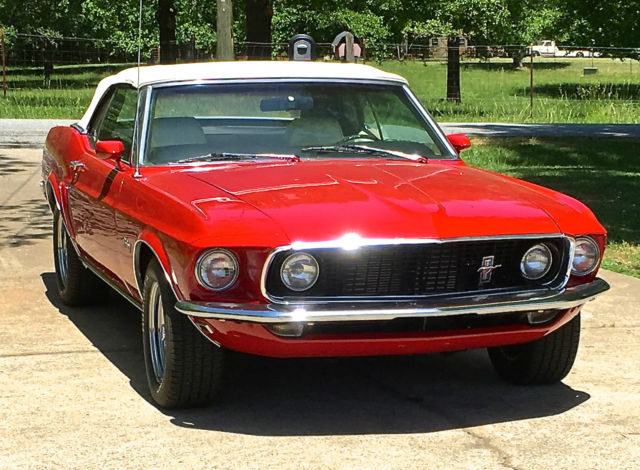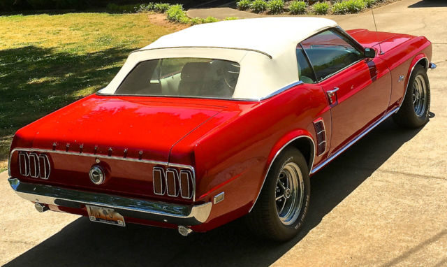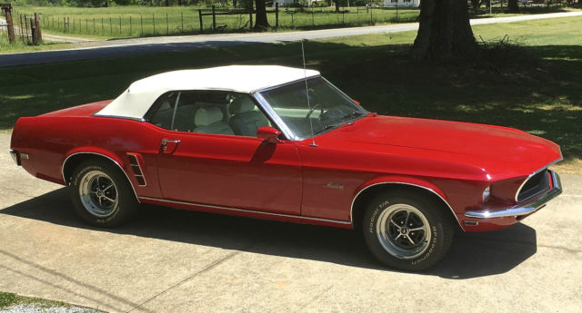 1969 Mustang Convertible Candyapple Red w/ Rare White Deluxe Interior Highly Optioned This is a excellent driver quality 1969 Mustang Convertible. This car is highly optioned and very classy. The Candyapple Red paint flows nicely with the White power top and "Rare" White Deluxe Interior. This Mustang was restored many years ago but has held up nicely over the years. During the restoration patch panels were used in floor pans to eliminate rust concerns, and new quarter panels were also added during the restoration. The rare White Deluxe interior was recovered during the restoration and is in great condition. The convertible top is also in great condition with just a hint of discoloration from age and use. The paint still shines nicely and looks great but the car has been driven over the years so expect the normal wear (small rock chip, small scratch, small bubble etc.) The motor was freshened within the last 4 years and at that time a aluminum 4-barrell intake and carb was added as well as converting the Air Condition to modern 134a specs. The transmission still shifts nice and the rear-end has new seals and bearings. The gas tank is also new. The power steering and power disc brakes makes this car very easy to drive. This car was also ordered with the tilt column and is rarely seen these days. The Magnum 500 wheels and BFG tires were also added in the last 3 years and look excellent on this car. Most of the chrome trim is original and is in great condition. If you are in the market for a nice driver quality Mustang Convertible don't miss this opportunity to own this rare highly optioned 1969 Mustang Convertible! Video and Marti Report below This vehicle is sold as-is where-is. Buyer is responsible for shipping, however I will be glad to assist a buyer with any arrangements he or she may need. A $2,000 deposit is due within 48 hours of auction end. The remaining balance is due within 7 days of auction end. Please ask any and all questions before the auction has ended. If you would like additional information, more pictures, or would like to make a appointment to view this car please call 864-494-4485 (if you receive a voicemail, please leave a message I will return your call).Please do not bid unless you intend to buy. See a video of this item