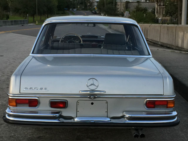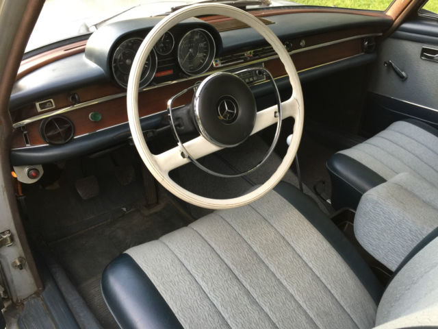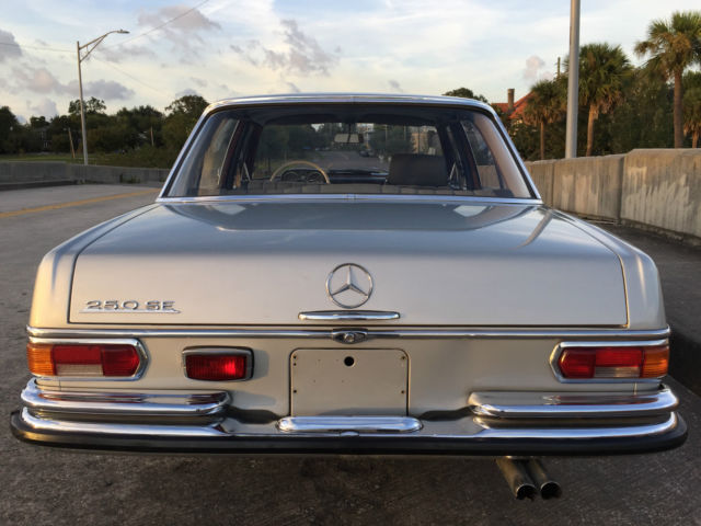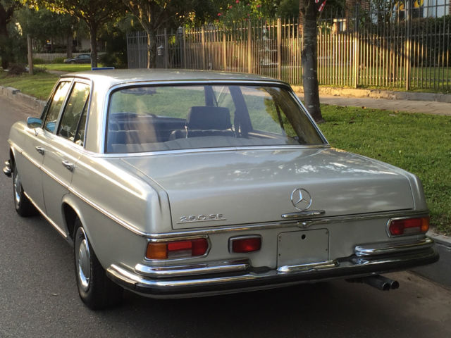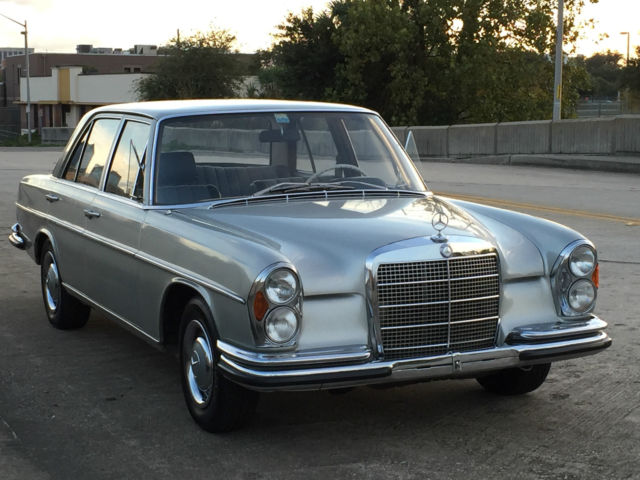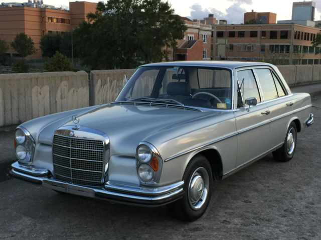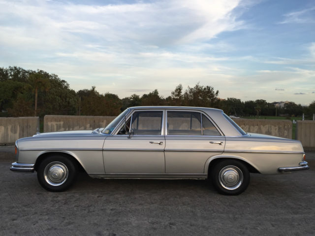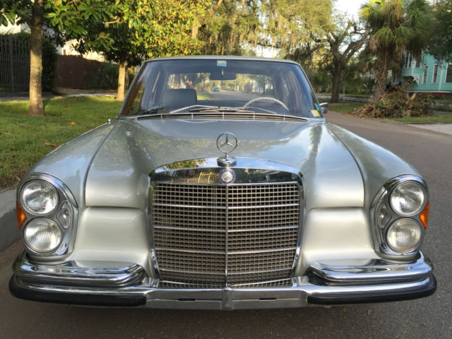 1967 Mercedes-Benz 250SE Sedan (W108) VIN # 108.014-10-029825 Gorgeous DB 180 Silver-Grey Metallic * exterior paint (older re-paint, very presentable) complimented with two-tone blue/grey interior. Desirable true EURO car: - 4-speed MANUAL transmission - odometer in km (kilometers) - manual windows - RARE passenger front headrest - no side-markers Original BLAUPUNKT radio with Hirschmann radio antenna (and antenna key!). Original 141276 kilometers (app. 87803 miles). 2 previous owners. Original 3 keys included. Never in any type of accident. Excellent running/driving car. Strong and powerful engine. Smooth and precise transmission. Tight suspension. No unusual noises of any kind.Properly maintained and well preserved. Recent tune-up. This car came recently out of a long-term storage. Following has been done to it: - engine oil change;, - all fluids change (engine, radiator, brake system);, - new spark plugs, new wires, new cap and rotor, new points;, - all 4 new brake calipers, pads and all brake lines;, - new clutch master cylinder;, - new clutch slave cylinder;, - gas tank removal and flush;, - new fuel pump;. All the chrome (bumpers) and aluminum trim is in excellent shape! (The rear bumper's rubber has a crack in the corner. A brand new rubber is coming with the car.) All the glass (SEKURIT) is absolutely flawless! All windows (manual), lights, gauges, turn signals, horn and radio work the way they should. The clock does not. Even the glove-box compartment light works! Seats are strong and supportive, they have no rips or tears of any kind (were always covered with sheep skin wool covers). All the wood (dash, front windshield bow and around the windshield, around windows) is healthy and well aged, with a beautiful age-patina. Headliner is like new.Brakes are new, emergency brake is good. Tires are brand new 195/70-14". The exhaust is good. The undercarriage is solid (original floors). The jack points have been exchanged at some point of time. Never in any type of accident. Original 3 keys, books/manuals, jack, spare tire, first aid kit included. Nothing matches the timeless elegance of W108 Sedans! This vehicle is 50 years old.It is absolutely gorgeous and it is ready be enjoyed right away.Due to the age sold as-is.$1000 deposit due immediately (non-refundable), balance within the next 3 days via bank wire transfer, cashiers check or cash.This is a WORLDWIDE sale. I can help organize the shipping to anywhere in the world.* 904-859-5561 *