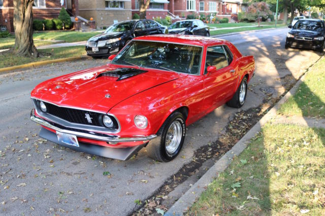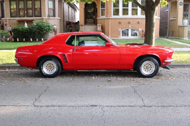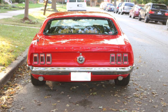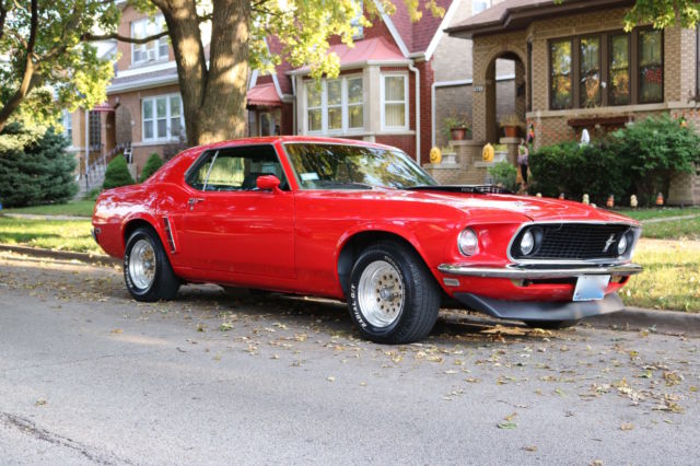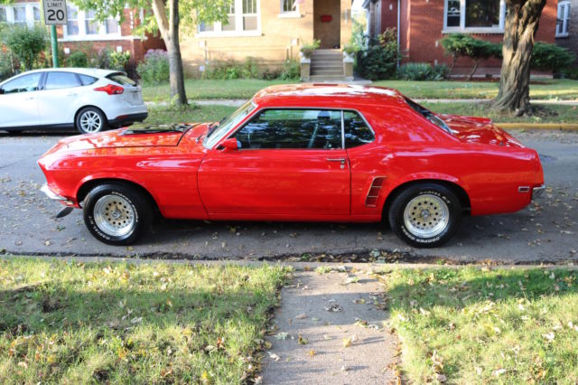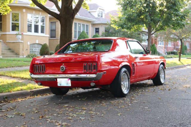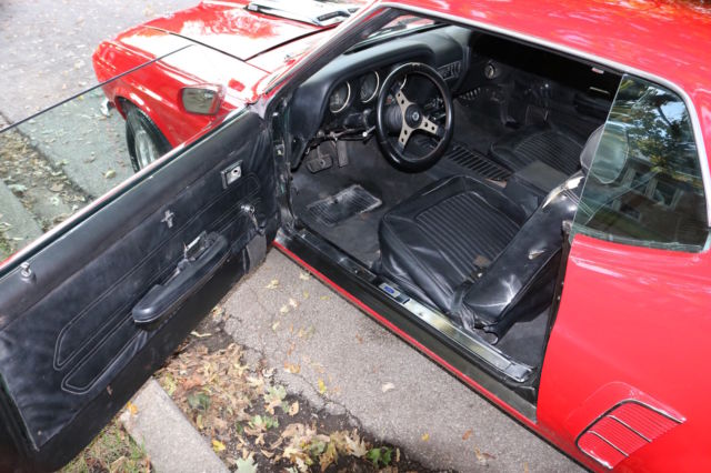 Here we have a 1969 Ford Mustang Coupe in Red with a black interior. Runs and drives great! Freshly Repainted. Completely stripped down to bare metal. No holes anywhere. Solid Metal. Primer coated, Seal Coated and Top Coated. Realigned all body, straight everywhere. Solid Trunk, no holes!Engine is a 351 Windsor with a Mallory electronic distributor, professionally rebuilt 4bbl AFB Carter Competition Series Carb Series:9637sa(less than 50 miles) , Holley Valve Covers, high performance water pump, high performance 3-row aluminum radiator, new starter, new ignition coil, new hoses, new spark plugs, new intake manifold gasket, good compression overall. This car is fast! The engine was completely rebuilt in the late 80's. New Brake BoosterNew Master Cylinder It has the legendary, indestructible FMX automatic transmission. Drives and stops straight.14inch RimsNew Cooper Cobra tires(less than 1000 miles)New door and trunk weatherstrippingAll Glass is good, everything is original except driver side quarter windowNew Hood hingesNew Radiator OverflowNew HeadlightsNew Front Lip SpoilerNew Radio: AM/FM and AuxPower Antenna(Not connected but all wires are there)Heat works greatWindow wipers and windshield washer worksHas the the space and originally was an A/C car but currently does not have A/CNew Dashboard (Ford Tooling)New TachometerPassenger and Rear Seats are in good conditionDriver seat needs reupholstering Headliner and insulation is included but NOT installedChrome is in good shapeNew Door SillsNew Hood PinsSheet Metal sectioning off the trunk and interiorAll seat belts are there(lap belts and shoulder belts) The Floor pans are good condition, no soft spots. Frame Rails are all solid. Nevada Car, hardly ANY rust. Overall, this car is in great condition for its age. Needs TLC for the interior and more work depending on how detailed you want to go for the engine. However, AS IS this car will turn heads and can easily be used everyday, summer or winter.This car can be easily fixed completely to be a show car, resto-mod or it can be a daily driver right now. Yours to pick. Hope you enjoyed this,if you have ANY questions feel free to contact me.