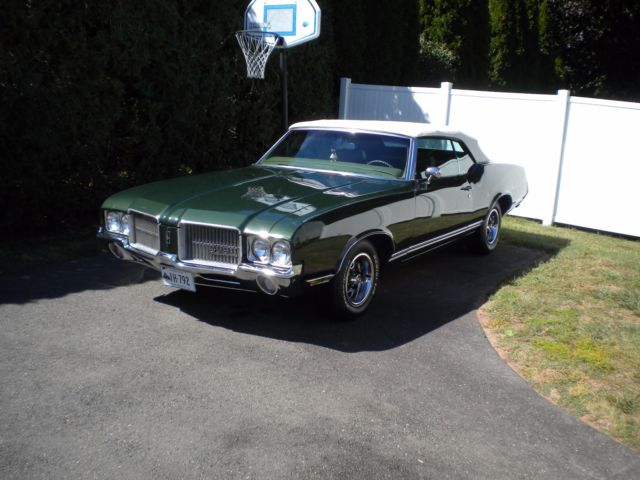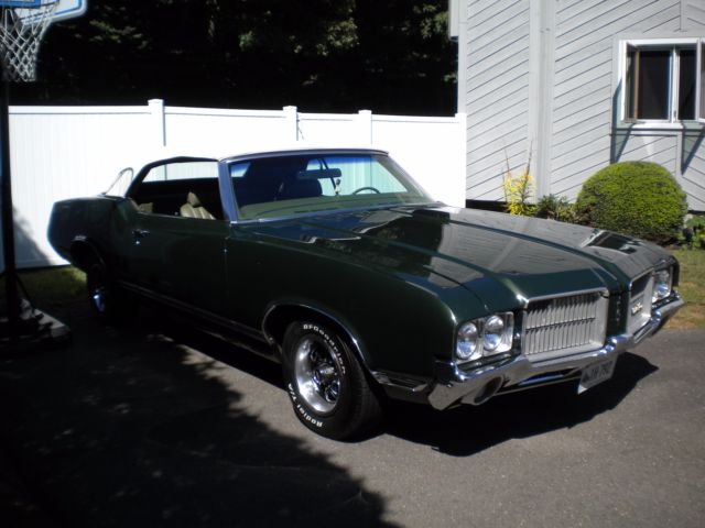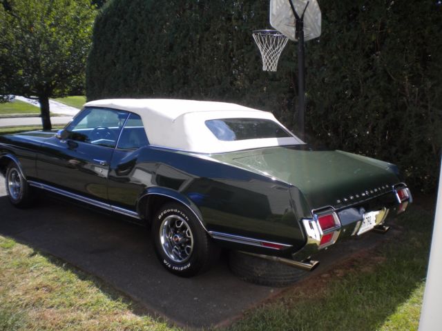 Engine Rebuilt 1969 350 bored out .030 (now 355 cu), built Winter 2015/2016 Forged crank Forged pistons Forged rods Flat top pistons .042 in. thin gaskets 10.8:1 compression, runs premium gas #6 heads with 442 2.07/1.72 Si valves Edelbrock Performer RPM intake Comp XE262 hydraulic flat tappet cam Rebuilt Quadrajet 750 carb Rebuilt distributor with Pertronix upgrade Exhaust Hedman headers 1 7/8 in. primary, 3 in. collector 2 1/2 in. pipes 18 in. long Cherry Bomb glasspacks Wheels 215/70R15 BF Goodrich Radial T/As Oldsmobile SSII 442 wheels painted black Bolt on center caps Horn 110 psi compressor 3 trumpet train horn This car is a head turner. Doesn't need anything but a new owner. I haven't had the car dynoed yet, but I would guess the motor makes somewhere between 350-380 horsepower and 420 ft. lb of torque. She cruises better than 95% of what's on the road today and pulls hard when you want her to. The new owner will also get the original motor, vinyl boot that goes over the top when it's down, all the literature that came with the car, receipts for everything I've put on the car, and the hubcaps that came with the car originally.