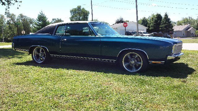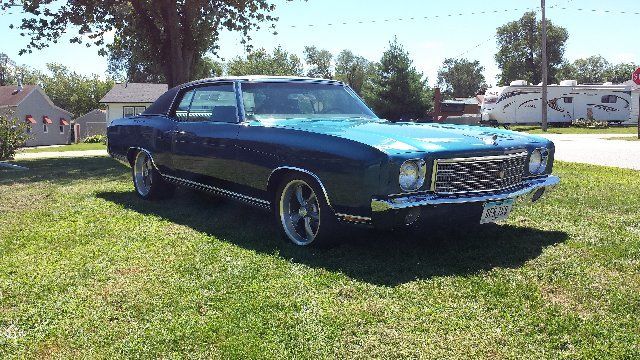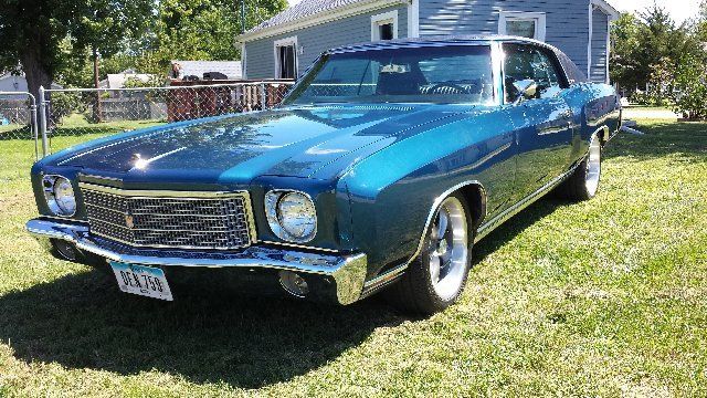 This is a 1970 Chevy Monte Carlo. It is Blue with Black Vinyl Top Black Bucket Seat Interior, with console. Interior is in Excellent Condition, no rips tears or worn spots, appears to be all original.It has Power Steering Power Disc Brakes, Tilt wheel, AC, rear defogger. Has new Dakota Digital VHX Gauge kit just installed.all programmable carbon fiber with Blue Back lighting.Also just installed a new Sony Hi Power CD player with blue tooth and I pod Hook upsAll new Kenwood speakers front and rear. Body Has No Rust. all original Panels, was re painted about 10 years ago, has some chips, but looks good.It was originally fathom Blue, but it this blue on it now is a little greener tint, i get allot of compliments on the color. It has a all Original 300hp 350 Engine Qjet 4bl carb,with Muncie 4 speed. Trans and hurst shifter, clutch was all new Last Year.I do not know if it is a Original 4 speed car, I have no documentation that it is, On that note, if it was converted, it was a very good job.Car Has 60,400 Original Miles. Full Dual Exhaust with turbo Mufflers. New Riddler Wheels 18x10 rear 17x7 front all new tires. 12 bolt open rear was told its a 342 gear. has rear sway bar. All Chrome and Stainless trim is really nice near perfect. Car is super Straight. No Junk. It has new upper, and lower front Tubular A arms. The Car Runs and Drives great, It is a Fun Car to drive,and turns allot of heads. I May Consider Partial Trades.Interested or have any Questions feel free to call 563-210-5923