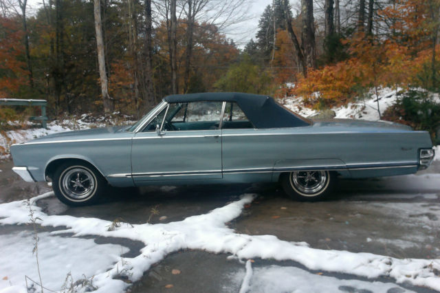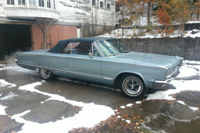 The 2 door Chrysler Newport convertible was built in March of 1966. It is light metallic blue on the outside with light and dark blue freshly re-upholstered bucket seats. The dark blue carpet is new January 2016. The convertible top and boot covering it are also new in January 2016. Options include AM/FM radio and rebuilt front and rear speakers. The clock has been repaired and keeps accurate time. The door panels are original and in excellent condition for their age. All windows work well. The trunk liners and mat are new and were replaced in January 2016. The tires are 15" radial white walls with new chrome wheels and spinners. The original 14" wheels and wheel covers are included. The fuel tank is cleaned and coated. The tank sender is new. The brake pads have been changed and so has the master cylinder. The car runs and drives great. I would be comfortable driving anywhere in the country. The engine is 100% rebuilt in 2015 and is a numbers matching 383 4 barrel 330HP V8 with a rebuilt torque flight 3 speed automatic transmission. The rear axle is a limit ship differencial. The engine has high performance Mopar exhaust manifolds, dual exhaust and a new 650 CFM Edelbrock 4 bbl carburetor. The radiator has been re-cored, power steering pump, water pump, hoses, thermostat, alternator were all rebuilt or replaced during the engine overhaul. It is estimated that the car has been driven 4,500 miles since rebuild. I had originally planned on keeping this car since it is identical to the one I had in high school. I currently own too many Chryslers and am looking to thin the herd. No expense has been spared in the rebuild of mechanicals and interior of this automobile. Any questions please call Tom at 518-926-8000