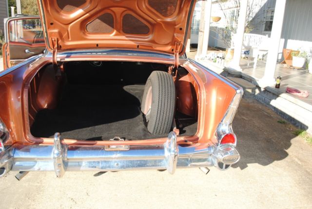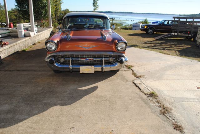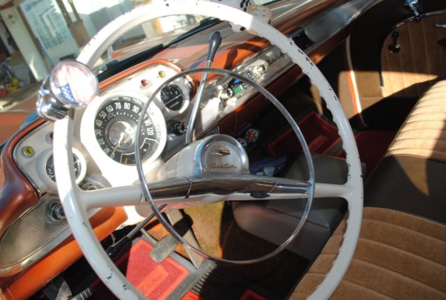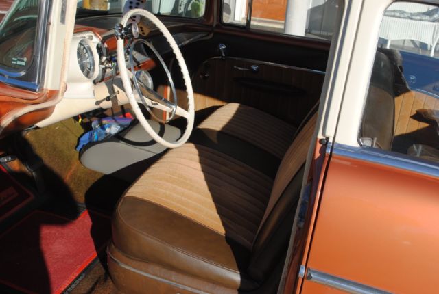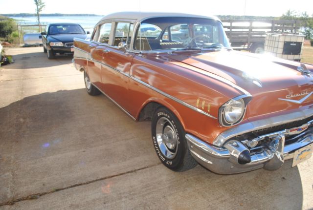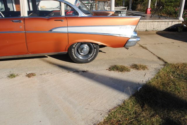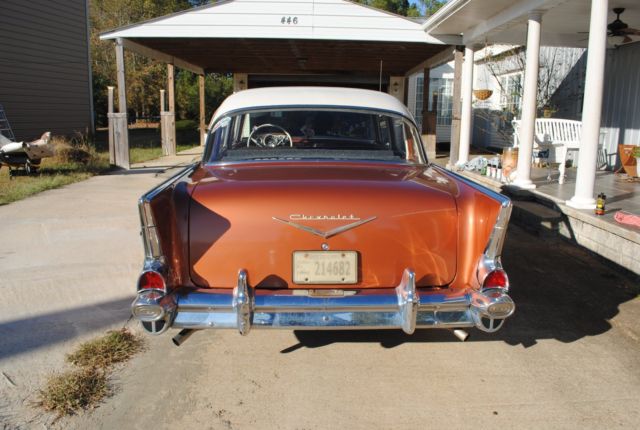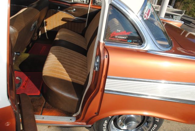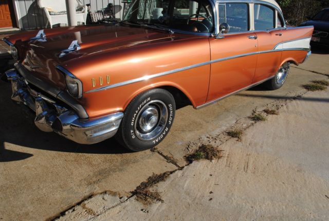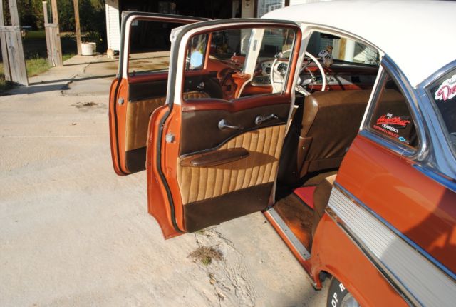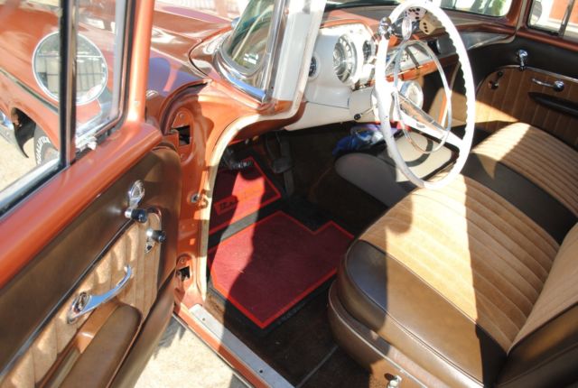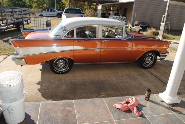 You are loo0king at a nice 4 door with a 283 V8 with a auto trans (27,885 miles on a rebuilt engine) with a 4bbl carb. This car is 59 years old and has been repainted to its original colors Sierra Gold with a Cream top. Everything is operational on this vehicle except the digital clock. The dash is not cut up and the AM-FM radio was made for the car. In the last 10 years new ball joints, tie rods, and shocks (air shocks on rear). The interior is new. Some of the features are Stainless steel dual exhaust, Rally Wheels with new Dunlop white letter radial tires (original rims and a new set of original tires go with the car), has a set of fender skirts. Car has been converted to an alternator. Floor pans are nice and solid. Inside trunk is in great shape, look at the pictures you will see one little bubble in paint on bottom corner of driver side front fender. This car runs and drives nice. You will be proud to own. This car is ready for the long drive home. We have a clear Mississippi title for easy transfer. We require a $500.00 non refundable deposit at auction end.