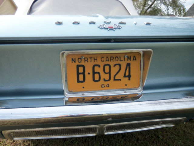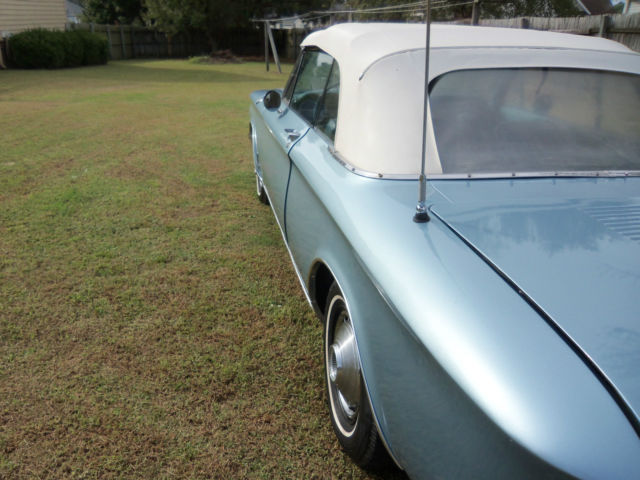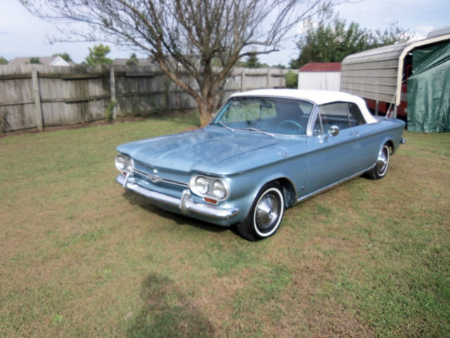 A 1964 Corvair Convertible that has been in NC since 1983, its in very good condition and driven regularly with no problems. The interior has been completely redone with Clarks new med blue upholstery kit for all seats, and all door and quarter window panels plus a new med blue Dash pad. all weather stripping, top frame weather strips and window fuzzies have also been replaced . The front windshield was replaced about 7-8 years ago with a full tinted glass. The motor was replaced with a fresh overhauled 1965 "RH" 110 HP engine that was rebuilt by an experienced GM mechanic using new NOS or parts from Clarks Corvair which include a new C5084 nitrided crankshaft with 10/10 bearings; C8332 64 +20 forged pistons and moly rings; C8801 Cam with fail safe gear was also installed. Both heads were completely reworked with new valves and guides. a High volumn oil pump was installed and viton gaskets were used in all positions. New blower and idler bearings were installed as was a new Harmonic balancer. Well over $2,000 (documented) alone in new parts from Clarks to rebuild engine. The car has 73K miles of it showing on the speedometer but the new engine only has under 20K miles and runs good with good even compression on all 6 cylinders. a complete set of rocker trim panels and wheel well trim from Clarks was installed a couple years back and are still in excellent condition. Being 50+ years old the paint was starting to show signs of fading and bubbles here and there so The body got new NOS steel rocker panels on both sides installed and a professional repaint in base coat clear coat Silver Blue Metallic paint this past summer (2016), and it looks great. The white top is not new but it looks good and does not leak, and it comes with a med blue Boot Cover and a match set of correct 64 Monza hub Caps. The trunk is covered with Clarks 7 piece carpet kit, a little stained and faded but still serves its purpose. The car has a jack and lug wrench. This is the third listing: the first listing did not meet the reserve price; the second listing got a bid, and was sold but the buyer retracted his bid at last minute ; so this is the third listing, hopefully the third is a charm; and it goes to a new owner. This car looks good, drives good and performs good with many years left to enjoy on the road.