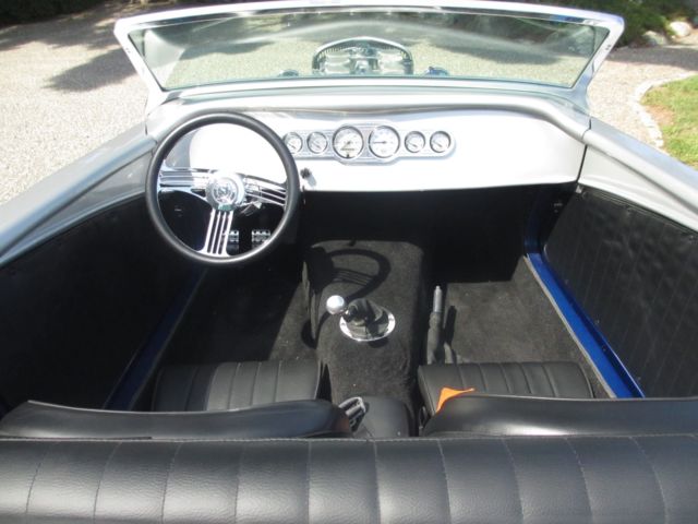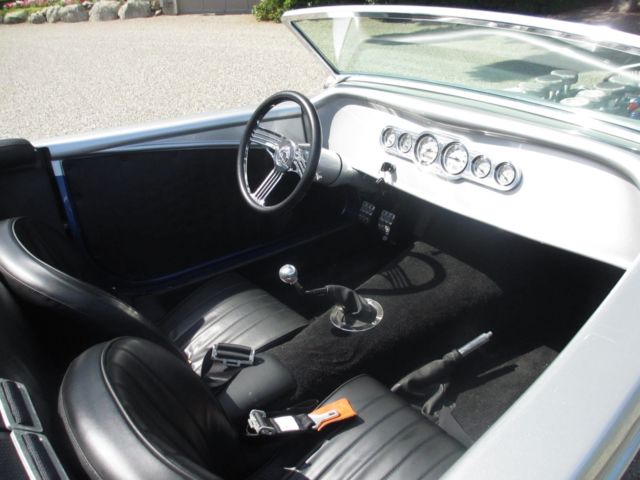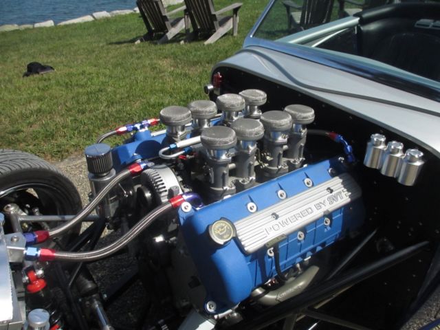 Here is a build sheet of what is in the car. Powder coated frame. Tilt column, 20" American racing rear wheels with Kuhmo ecsta spt 285-30-20 tires, 17" American race front wheels with Kuhmo ecsta spt 245-40-17 on the front, 12.88 wilwood drilled and slotted rotors on the front, 12.19 wilwood drilled and slotted rotors on the rear. Split rear exhaust, 3 link suspension, Two tone paint, Leather seats, Red Line Racing 8 stack fuel injection system supplied by Wayne Pressley at Very Cool Parts, JBA titanium ceramic coated headers, All supply and return fuel lines are stainless steel braided with AN fittings, Fortes supplied a new Ford 8.8 rear end with 355 gears and a ford racing aluminum differential cover with girdle and a hydraulic clutch assembly, Ford Racing clutch and pressure plate, Stainless steel braided pvc system supplied by Pro Weld Performance parts, Rear cross over coolant kit by Modular Mustang, Aeroquip inline fuel filter and fuel pressure regulator, Boyds fuel tank and stealth fuel pump, Heat shield between the floor and mufflers, Entire interior has cool tec heat shielding mat installed, Kootenai custom parts supplied the seal plate for the fuel tank, wheel well sealing panels and the ss barrel bump steer kit. There is not a top but it was built to install the Factory Five rag top if so desired. The car also comes with a set of quick jacks. Nothing but the best was used in the construction. I have over $50,000.00 invested in parts and paint alone but the reserve is set much lower. Just ready for a new project. Questions call 207-266-6721
