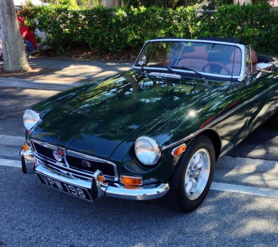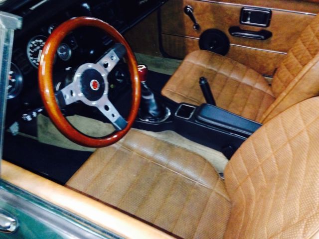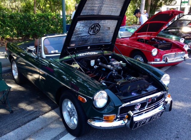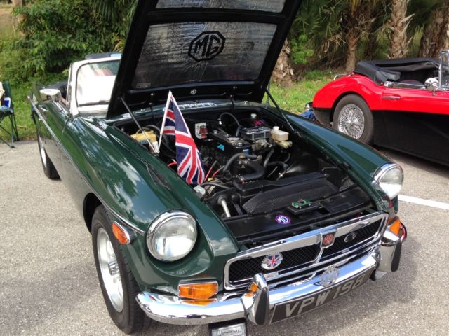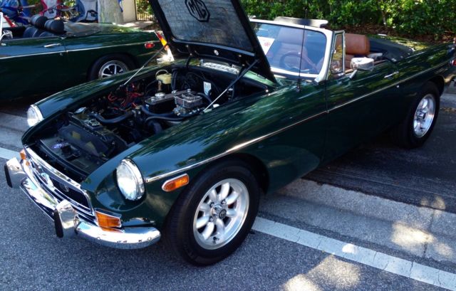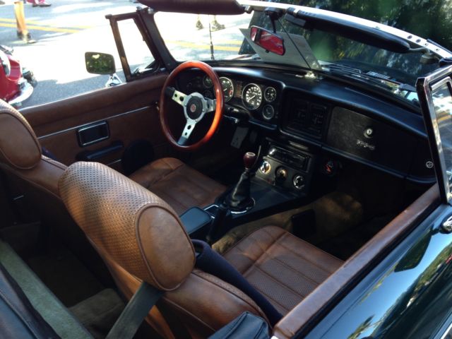 This perfectly restored 1979 MGB convertible roadster was completed in 2012. The restoration includes all mechanical systems and cosmetic. ENGINE: Rebuilt by Glenn's MG, St. Petersburg Florida. Bored out, new pistons, camshaft, valve train, new clutch. 32/36 Downdraft Weber 2 bbl carburetor with K&N intake, Mallory electronic distributor and coil, 100 amp alternator, new 14" electric cooling fan, oil cooler with stainless steel braided hoses, new radiator, water pump and hoses. Totally "detoxed" per John Twist, University Motors, Grand Rapids Michigan. Runs like new, 70 mph on the Interstate for hours to car shows in Florida and gets over 25 mpg. SUSPENSION: Monroe Sensatrac shocks, new springs (lowered 1/1/2 inches to pre-1975 ride height ) Urethane bushings,new tie rods, new Brembo rotors and calipers, stainless steel brake lines, new master cylinder and rear shoes. Ugly, heavy rubber bumpers replaced with beautiful new chrome bumpers and grille, save weight and improve handling. New Michelin Pilot sport A/S radial tires and Panasport alloy wheels. EXTERIOR: Stripped and sanded down to bare metal and all rust cut out and new steel welded in, including both rocker panels. No bondo. Skim coated, sanded, primed and painted with multiple coats of PPG British Racing Green paint and clear coat. Since completion the car has never been washed with soap and and water, only Meguiares Spray Cleaner/ Detailer and Carnauba wax. INTERIOR: Entire front cabin is insulated with DYNAMAP, new carpet with felt wool backing, new seat cushions and covers in heavy duty vinyl Autumn Leaf, new mats with MG logo. New console, door card panels, new retractable seat belts, new Tan Duralast vinyl top. Trunk (boot) carpet and spare tire package, original MG jack. Spare tire is a Michelin Pilot Sport, full size. All gauges and accessories are functional. Auxiliary voltmeter and retractable cup holder on passenger side. Audio system is a 200 watt, 2 6" door speakers and 2 8" rear speakers. EXHAUST: Cast iron low restriction header with stainless steel pipes, muffler, resonator and great sounding MONZA exhaust tip, which gives it the classic British sports car sound. This car is kept in an air-conditioned garage and never taken out when it was raining. Included with the MGB are service and parts manuals, owners glove compartment booklet and 3 Landau (convertible top) covers, and a battery tender/ connector for the OPTIMA sealed battery.