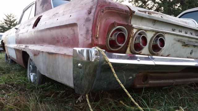THIS SS IS BACK UP FOR SALE SINCE THE LAST BUYER DID NOT PAY. PLEASE, SERIOUS BIDDERS ONLY. I HAVE REDUCED THE PRICE AND RESERVE. THIS CAR HAS THE SS VIN, COWL TAG INTERIOR CODES FOR AN SS, AND A CLEAR TITLE, SO YOU CAN REST ASSURED IT IS LEGIT. IF I DO NOT SELL IT THIS WEEK, I WILL MOST LIKELY NOT RELIST IT BECAUSE I NEED IT SOLD AND PAID FOR BY THE END OF THE MONTH OR NOT AT ALL. This 1964 Chevy Impala SS is production car 182,081 of about 890,000 various impalas made that year.  Much of the stainless and aluminum moulding inside and outside the car is in good shape and the rear half of the interior is in place for restoration. Between the moulding and interior, you can save a grand or more by refurbishing these and not having to buy replacement parts. The body panels on the exterior need work or patching, so I have tried to keep this in mind when pricing the vehicle. Please let me know if you have any questions about the car or would like photos of any specific areas.Thanks for your interest.