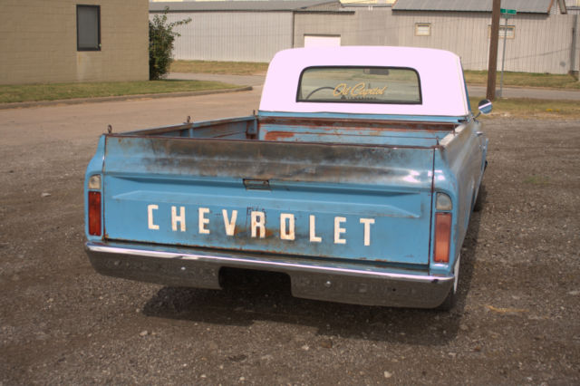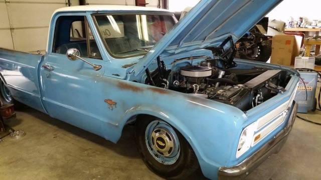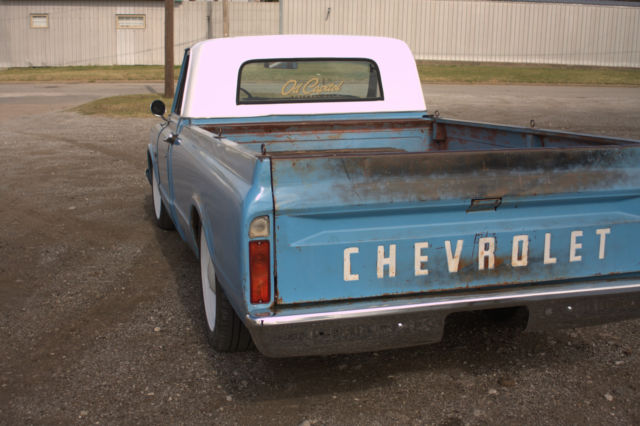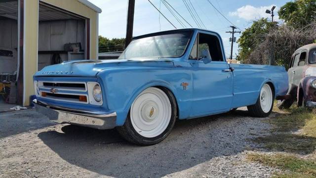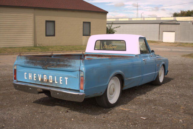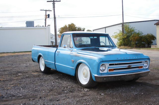 1967 Custom C10Air Ride      Vintage Air     Fresh 327/4speedTitle textThis is a 2 owner truck. Bought from Original Owners family from a Kansas farm.  Rebuilt fresh 327 SBC behind a 4speed. New Vintage Air AC kit installed.New Air Ride system installed.Custom Inner fenders to fit larger wheels/TiresNew Aluminum Radiator with dual fansCustom Radiator support. 22" Steel wheels w/custom mounted 66 capsComes with stock matched patina wheels and tires.All lights/turn signals and gauges work. InteriorFloors are solid, zero rustNew CarpetStock seat redoneNew windshield and sealNew window mechanisms BodyBody is 90% original.Fenders have been replaced (not new, salaved from a parts truck)Rust in rockers and corners repaired previously.Bed is solid, slight rust in one of the bottom floor supportsPaint has been touched up in a few areas and body was cleared. Roof is fresh White Paint.Brand new Chrome bumpers and mirrors.Truck does have imperfections, It is not a completely bodyworked straight truck, for most part it is still in original paint and sheetmetal. However it is extremely good shape and extremely rust free for a C10. If you are a serious buyer I will gladly discuss in depth the condition of the truck. Everything works as it should. Please ask any questions before bidding. Truck is listed elsewhere and locally. This is your chance to get a great looking truck at a decent price!