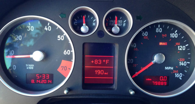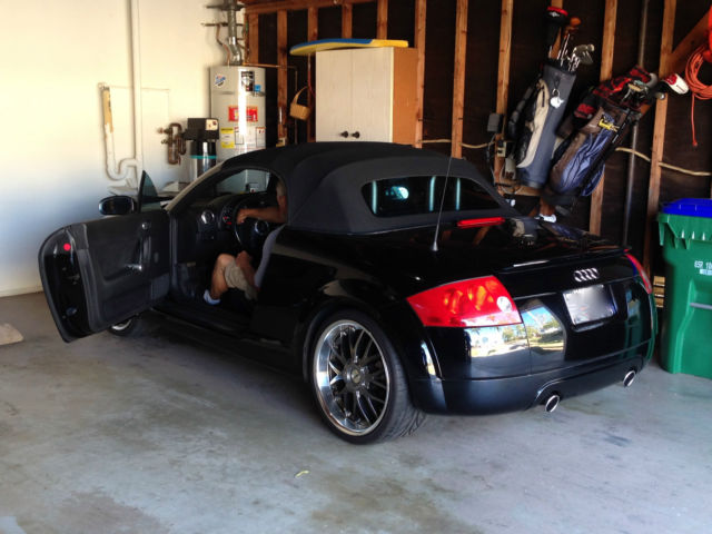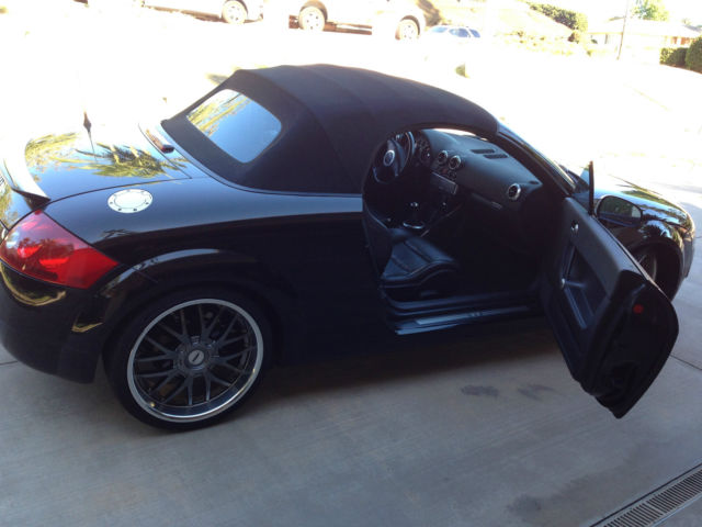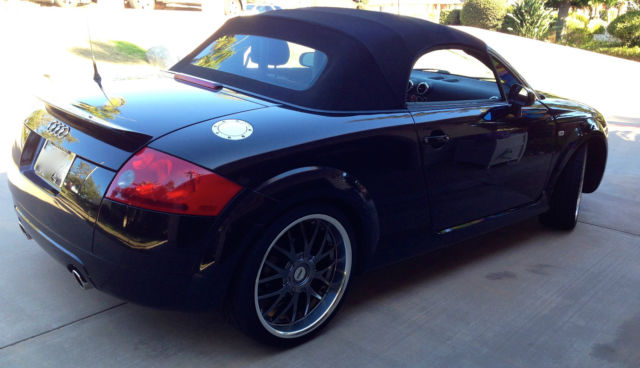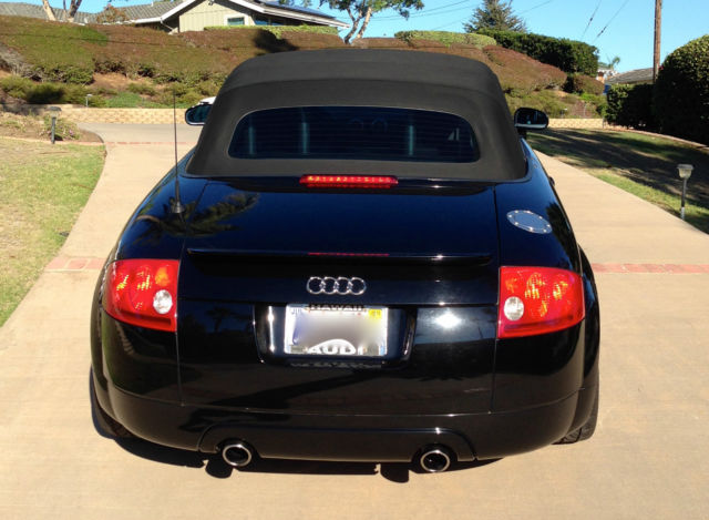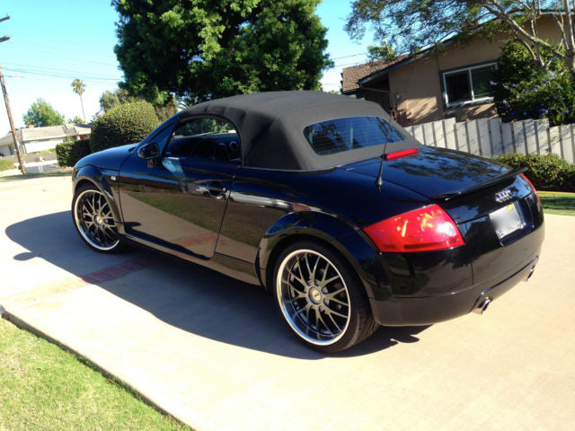 I'm selling my 2002 Black Audi TT Quattro Roadster. I am the 2nd owner. I bought it from one of my patients on Maui who co-owned it (2 owners listed on CarFax) with his daughter. It was retitled again for me when I shipped it to California (shows 2 owners - both me - Hawaii then CA). CARFAX will show that CA title is clear when it should not be. When I registered the vehicle in CA, not sure what happened, but the DMV missed it. I have had the car for 11 years and have enjoyed driving it! I am sure you will, too! It has been garaged it's entire life. Car is located in Carlsbad, California. If you are in the LA or San Diego area, please contact me to view the car. BUYER MUST ARRANGE AND PAY FOR SHIPPING. I am sad to see it go, but I need a different vehicle now. Also included in the sale are all four OEM wheels for FREE. Tune up at 60,000 miles New water pump with upgraded aluminum impeller New clutch kit New timing belt New water pump New AC compressor New rear brake rotors and pads All new rebuilt instrument cluster gauges TSW 19in wheels Hankook tires (two extra rear tires included for FREE) Neuspeed air intake Koni sport shocks Eiboch compressive load springs Revo chip stage one