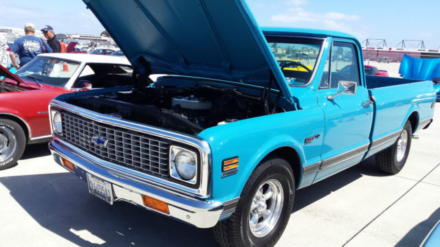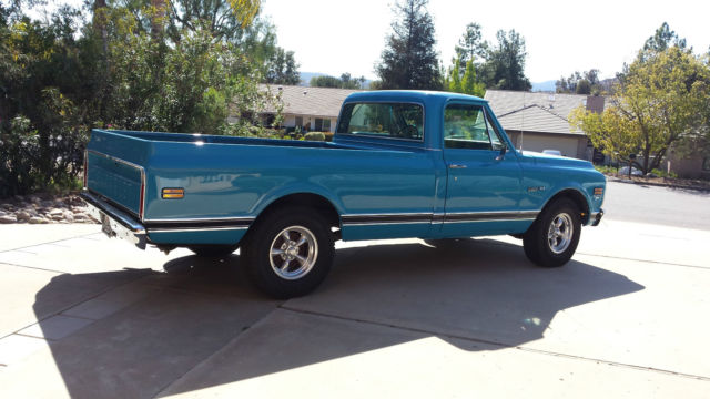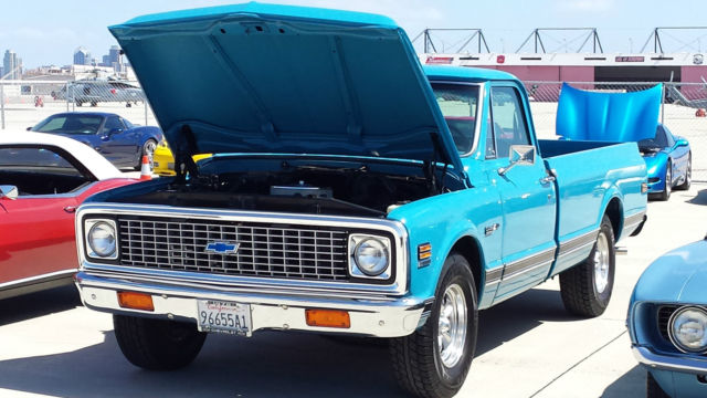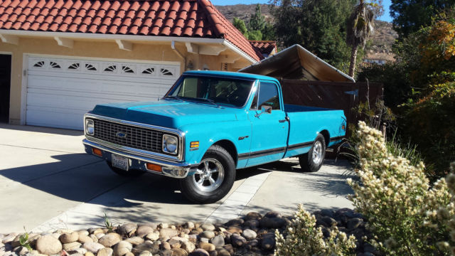 FRESH REBUILT ORIGINAL 350 MOTOR. AUTOMATIC that SHIFTS PERFECT, NO LEAKS. NEVER WRECKED, FRESH ORIGINAL BLUE FACTORY COLOR PAINT. DISC FRONT BRAKES IN GREAT WORKING CONDITION, New MSD Distributor, ignition, coil and starter, New Optima battery, Rechromed original bumpers. New hidden trailer hitch & trailer controls (never used). New Grill housing. All New outside molding, New side markers, New headlight bezels & lights. New brake lights and lenses, This truck is a Calif truck. NO metal panels replaced. When I bought it here locally I found only slight surface rust on the hood. Runs perfect, no problems. Reputable local engine builder rebuilt original motor with a slightly larger motorhome cam, New Edelbrok intake manifold, brand new carb. New Ceramic headers, New Stainless Exhaust system.Very nice interior, Interior was just done before I purchased the truck. I added shoulder seat belts on Driver and Passenger sides. After painting the original radio quit working. There is a slight crack in the original steering wheel, New American Racing tires, new Tires all around. This is a GREAT TRUCK and READY to DRIVE.  BUYER IS RESPONSIBLE FOR PICKING UP THIS TRUCK AND ANY TAXES OR FEES ASSOCIATED WITH THIS SALE. TRUCK HAS CURRENT REGISTRATION HERE IN CALIFORNIA . PLEASE FEEL FREE TO CHECK OUT MY FEEDBACK. SERIOUS PURCHASERS ONLY. THANKS