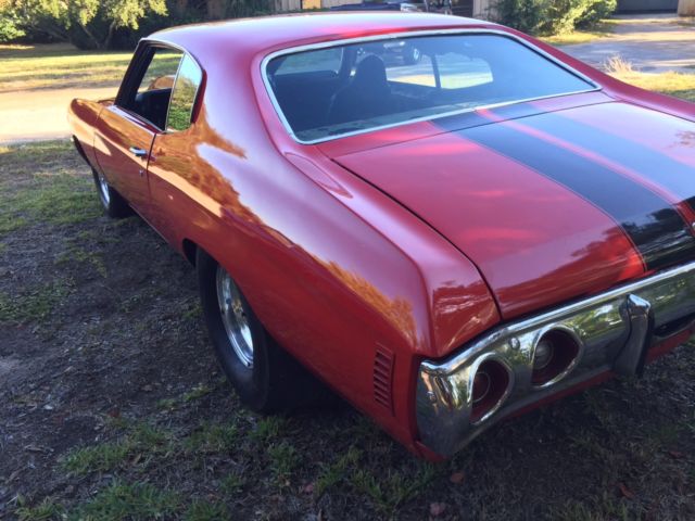-468 big block fresh -Competition cams 288 hydraulic  -Edelbrok air gap intake  -Edelbrock Carburetor -Hooker super competition headers -New Starter -New water pump -New ignition -Electric fans -Holley blue pump with -8 line  -400 turbo transmission  -Transgo shift kit -PTC torque converter 3500 stall  -12 bolt rear end  -35 spline axle  -411 gear  -Hurst roll control -Console hurst rachet shifter  -15x10 weld wheels on rear with 13.5 wide ET street tires  -15x4 weld wheels with Mickey Thompson front tires  -All tires New  -All new brakes   -Rear suspension is Edelbrock adjustable uppers and boxed lowers  -3 way adjustable shocks  -Front suspension is PST rebuild  -Manual steering -Manual Brakes -Car has a few small nicks on paint but i would consider it a 7/10 -Car has a brand new front bumper  -Master electrical cutoff switch mounted in rear backup light -New door panels  -New quarter panel interior panels as well  -Car does need a new headliner   Car has a clear title and is overall in great condition and rust free. Completely street legal and can be driven daily! If you have any questions feel free to shoot me a message anytime happy bidding! If you have any questions feel free to shoot me a text or give me a call at (210) 693-8970 i do work till four EST but will get back to you asap thanks!