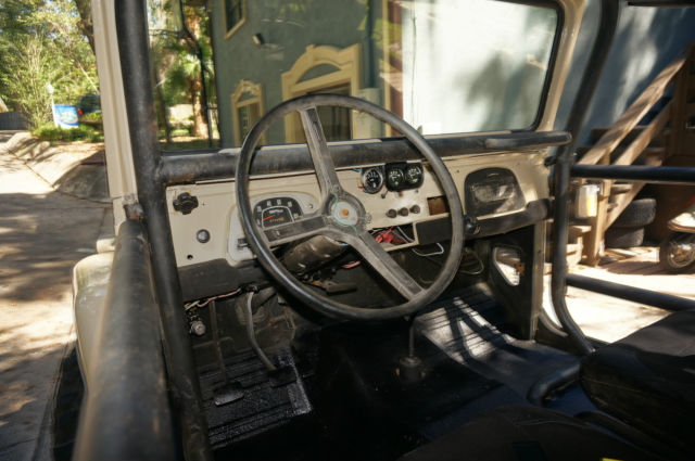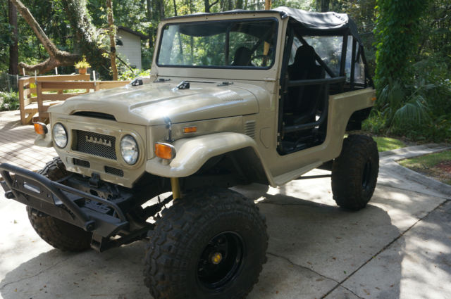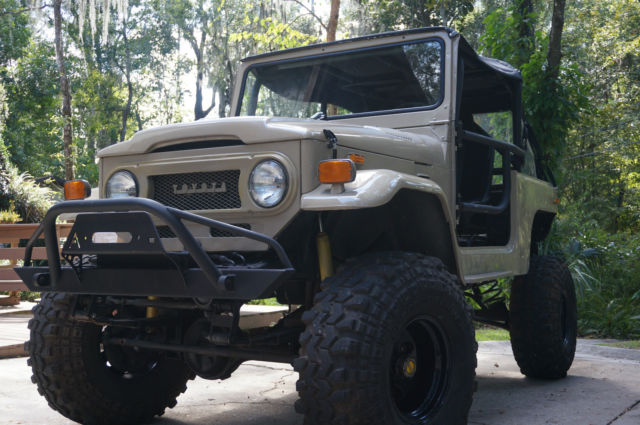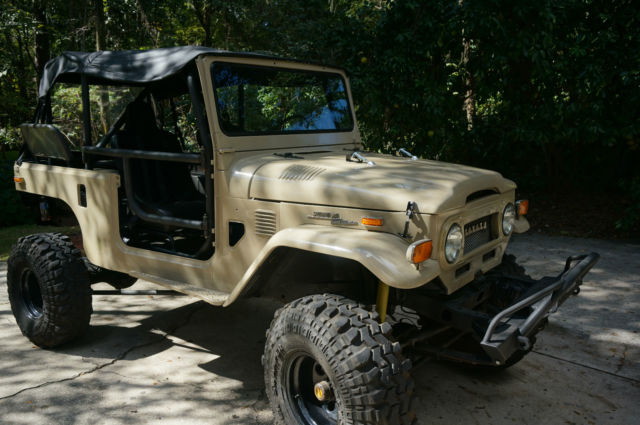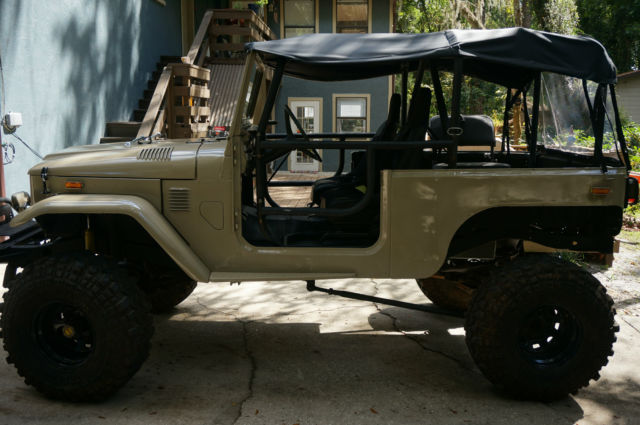 Up for sale is my awesome, 1973 Toyota FJ40 Land Cruiser. This rig is a one-of-a-kind beast and has the original Inline 6 motor. I bought this vehicle in Georgia, where it was initially created to be a "rock crawler" type of rig. It has a full roll cage that is welded down to the frame at every point. The doors are also made from similar material (roll cage). Also has 3-link suspension that was professionally installed (before I purchased it). The vehicle also has a transfer case that was added to the transmission that allows it to run in multiple gear options. Pretty sure it has Dana front and rear lockers as well. I would say that at least 97% of any rust that was found was removed and/or repaired. The frame had very little (less that 1%) small rust spots that was eliminated with sand blasting and Por 15 (see pics). Rides on 36" TSL's. There has been over $25K invested in this vehicle, but I'm just trying to recuperate some of what I have invested into it. I wish I had the time and funds to keep it, but my wife wants it sold. My loss is definitely your gain on this one! This vehicle would be great for trail riding, rock crawling, or even in the dunes out West! Here's what's been done to it so far: 1. Converted propane fuel system back to a New Weber Carbureted system 2. Custom made, New aluminum fuel tank from Boyd Fuel Tanks (approx. 11.5 gallons) 3. New fuel lines 4. New fuel pump 5. New fuel sending unit 6. New fuel gauge 7. New power steering pump and pulley 8. New steering box 9. New rear wheel cylinders and brake shoes 10. New brake lines 11. New brake pads 12. New clutch master cylinder 13. New clutch slave cylinder 14. New battery 15. New alternator 16. New bushings 17. New tinted windshield and molding 17. New seats with harnesses 18. All New front floor boards (from midline of vehicle forward) were removed and new metal installed 18a. All metal was welded in and re-enforced with 1" rectangular metal tubing underneath (see pics) 20. New custom made heavy duty, black, denim soft top with clear rear plastic 21. New paint with Toyota Quicksand color 22. New, black rhino-lining on inside tub with an overlay of flex-seal 23. New rear jump seat (not bolted down yet, see pics) 24. New steel bumper/stinger with winch plate (welded to frame) 25. New water temp gauge 26. New oil pressure gauge 27. Recent valve adjustment and oil change with Mobil 1 Fully-synthetic $500 deposit via certified PayPal account due within 24 hours of auction close. Payment by cashier's check or money order due within 7 days. Buyer responsible for pick-up or shipping. Clean Florida title in hand and will only be released with vehicle upon pick-up once final payment has been cleared in bank.