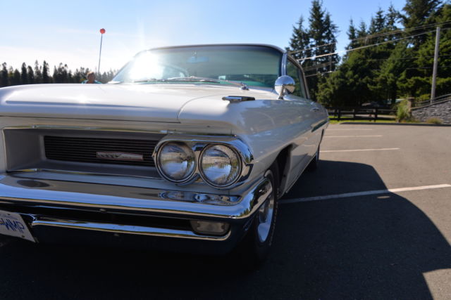 All original upholstery, with new carpetsThis car has been very beautifully restored and garage kept, you will look long and hard to find a better example of this rare American built " Wide-Track" Pontiac. ~ Please call me at my home in Canada 250-923-5815 PST after 6:00pm only please~ Email and ask for a dropbox link to more photos.~ 9 - Grand Prix~ 62 - Year~ S - South Gate~ 5975 - Production numbersI am the 3rd owner of this car. The original owner bought it new in 1962. He owned it for about 10 years and sold it to another Pontiac enthusiast who pampered the car while he owned it. Some years later, the original owner bought it back and completed a major paint and restoration job which was completed in a professional shop. This is not a backyard restoration.There was NO rust or rot anywhere in the vehicle. The car was completly disassembled (frame on), and repainted inside and out. Many body seals and weatherstripping were replaced with new rubber. All the upholstery is ORIGINAL with the exception of new carpets, dash-pad which was re-done somewhere in the states, and paint on the dashboard. All of the 8 lug wheels are in pristine condition. I even have a spare NOS hubcap in case one gets lost. If anyone wants more photos of ANY part of this car, just ask. No fuzzy photos or BS here, just an honest description, no disappointments.