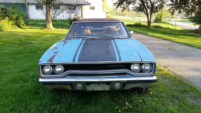Again, I have to relist this...it is a numbers matching 1970 Plymouth Roadrunner, original 383 pistol grip 4-speed car. All VIN numbers present & match on radiator support, on the drivers side trunk lip area, engine block, & transmission. The fender tag is still on the car. I did look for a build sheet & I could not find one. This Roadrunner needs a complete rotisserie restoration, it deserves it. I would say it needs a full floor pan, trunk pan, hood, & lower quarters as well. It does have a N96 Air Grabber hood on it right now but the hood does needs replaced. The interior needs a full resto job too: it needs carpet, dash pad, a front bench to be original. The car does roll, but the brakes do not work but it does steer. The engine does turn over by hand, I never tried to start it, the transmission does shift. I was planning on doing the whole restoration job on this car but I have another one that's going through a restoration right now so I need to sell a few of the project cars. The Roadrunner is easily accessible so there won't be any issues putting it on a trailer. The car needs a lot, but this is a full numbers matching 4-speed car so its desirable. The car is sold as-is, buyer pays for shipping. I can assist with transportation of the car with a company I use out of Akron, Ohio. A non-refundable payment of $500 is due within 24 hours of successful bid & I expect full payment within 7 days of auction close. I'm not a Mopar guy, but I can get answers to whatever questions you have. Please do not bid unless you intend to buy, I've had to relist this multiple times due to non-paying buyers so please, please be 100% sure when you bid. I have a friend that restores Mopar's professionally so I can get the answers to your questions. Some of the pics on this ad are pics when I purchased the car but the car is still in the same shape as when I purchased it.